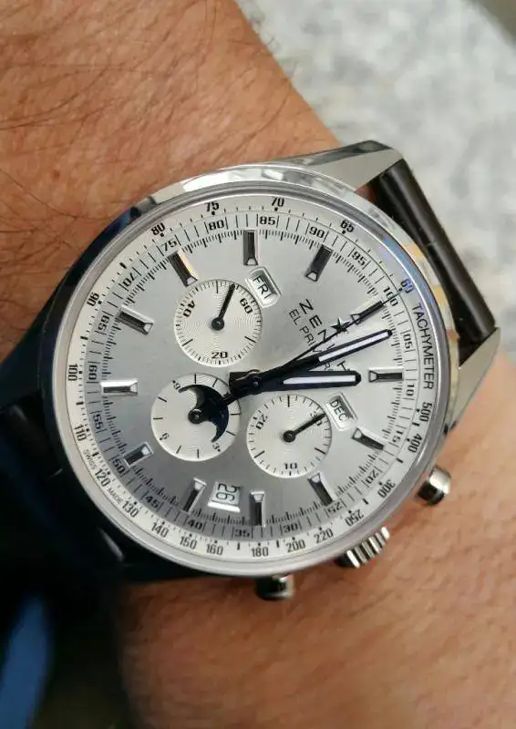 Veo que mencionas el Zenith Calendario Anual fases lunares. Ese modelo cuya denominación es Zenith el Primero 410 lo tengo yo ( tengon tres Zenihs, dos de ellos con el movimiento el Primero ) es también una maravilla.