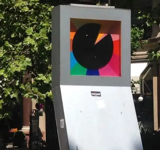 El reloj usa un disco dividido en diversos colores para indicar el tiempo, no cuenta con manecillas o punteros para horas, minutos o segundos.