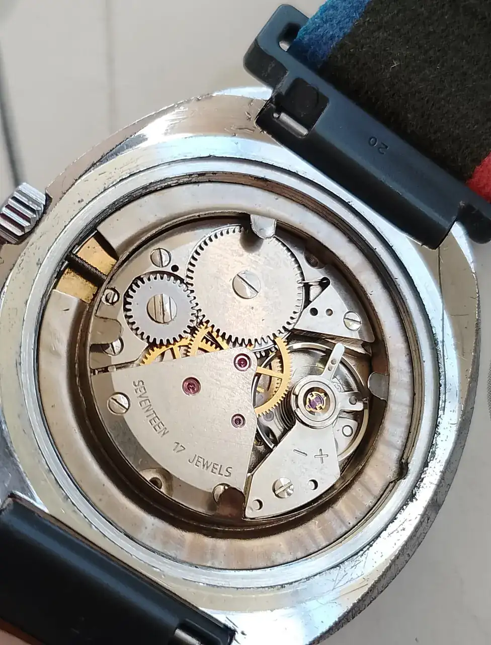 El reloj que les presento es una rareza al ser alemán de los 70s con un calibre manual INT 7410/2, acá marcando las 10:10 (aproximadamente