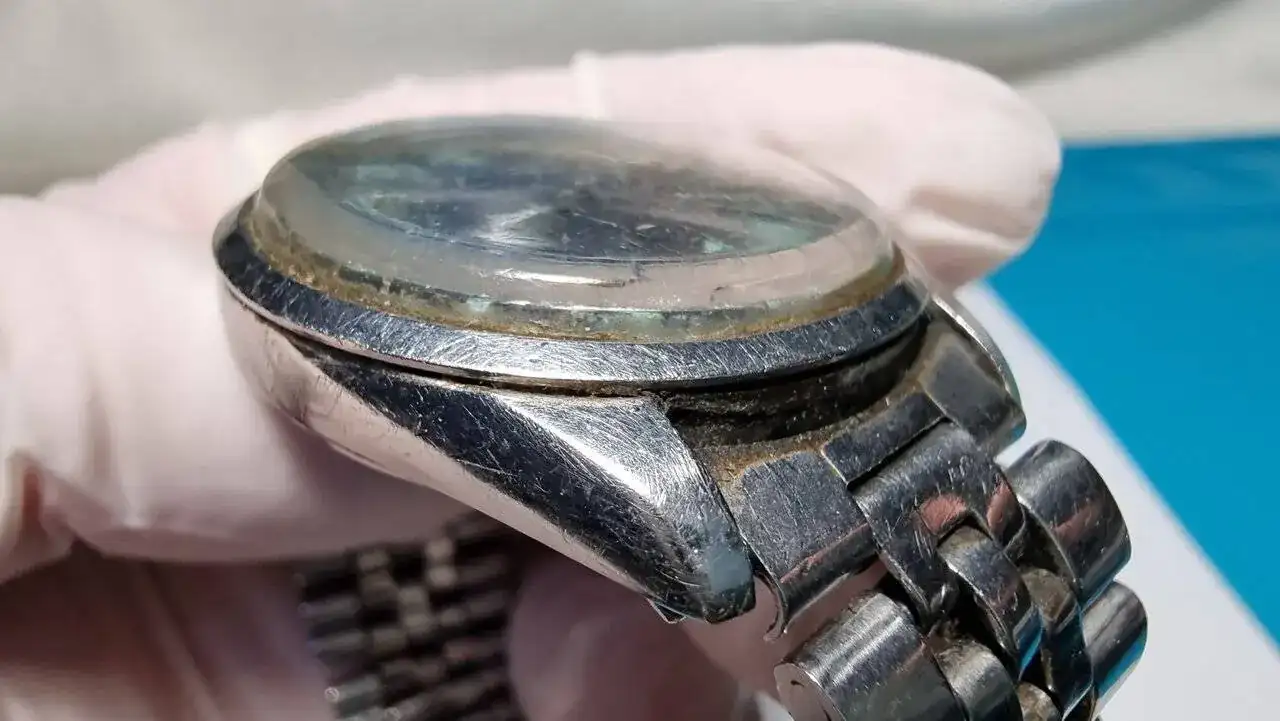 Cuando llegó, de lo primero que me percaté al tenerlo en la mano fue, ¡cómo no!, de la cantidad de mugre que presentaba, por lo que antes de seguir manipulándolo me puse unos guantes; la suciedad acumulada en los relojes cada vez me genera más aversión, sobre todo si hay tanta como en este caso.
