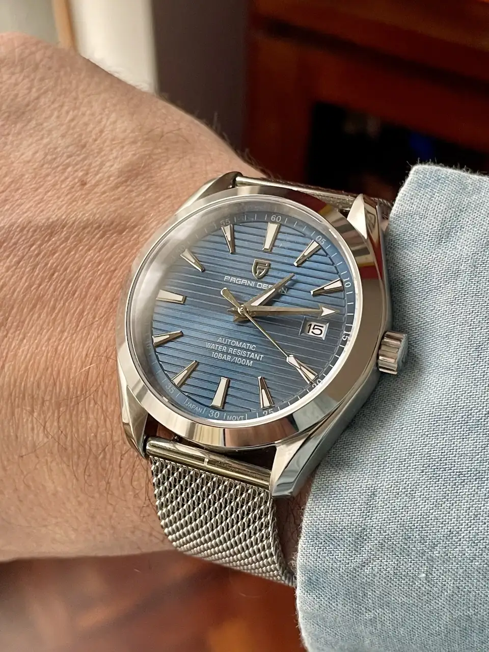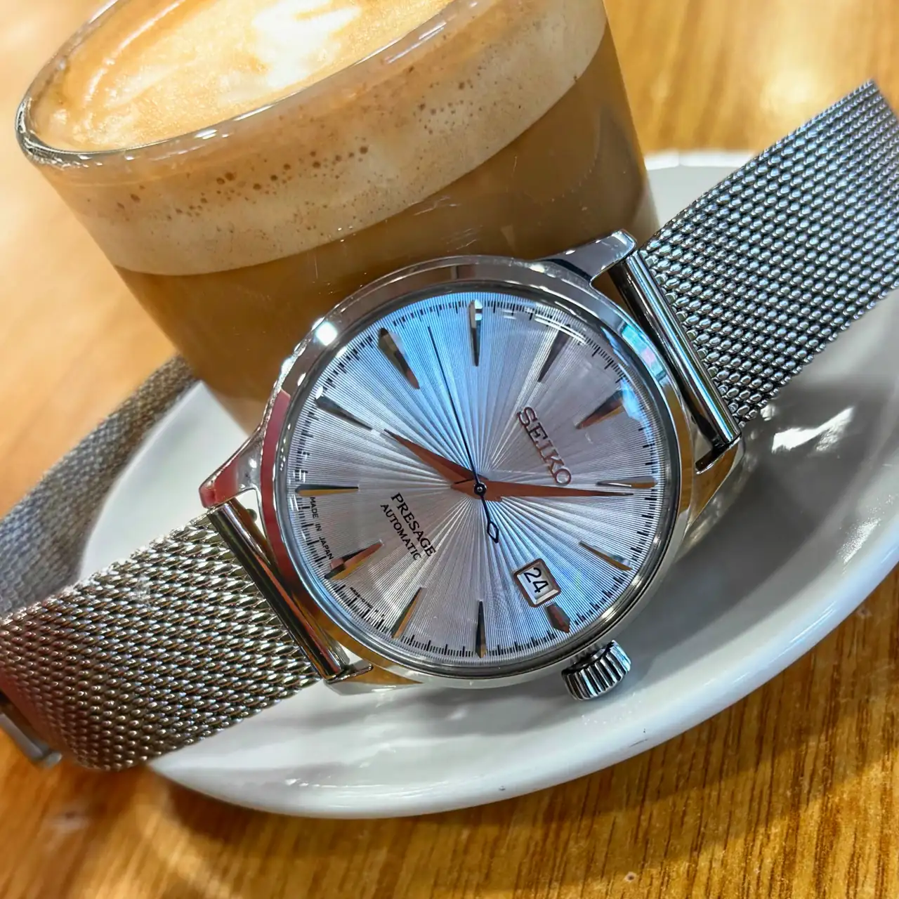 En este Citizen, el brazalete no me acababa de gustar, pero con esta milanesa particular, aparte de notarlo mucho más cómodo, si me gusta mucho. Además, es de ancho de 24mm, que a veces no es fácil de encontrar, el grano tiene una forma y una orientación particulares que hace que esta milanesas sean muy bonitas, además de ofrecer una gran calidad.