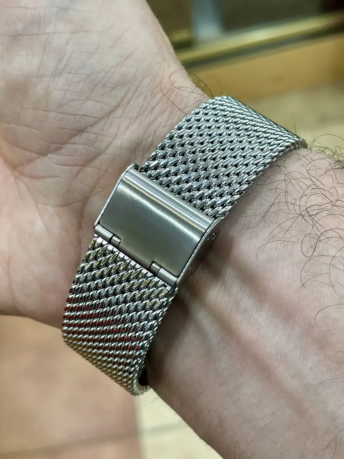 Hace tiempo que ví este hilo y quería enseñar mis milanesas, dado que a mí me gustan mucho. Tengo varios relojes con milanesa, de las cuales os pongo unas malas fotos: