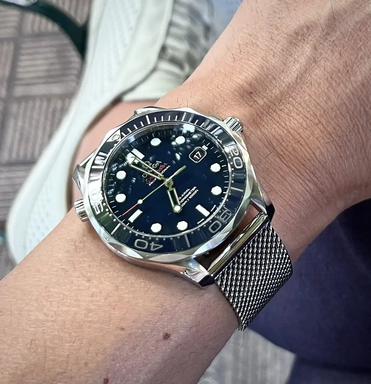 Efectivamente, como indiqué, usaba las denominadas Shark Mesh, y para asegurar su ajuste con extensiones en H, en mis Divers.Yo las utilizo hasta en diver, según el grosor de la maya metálica, si es muy fino solo para relojes de vestir pero más grueso incluso en diver, la tengo puesta en un Seamaster 300 y creo que le queda bien