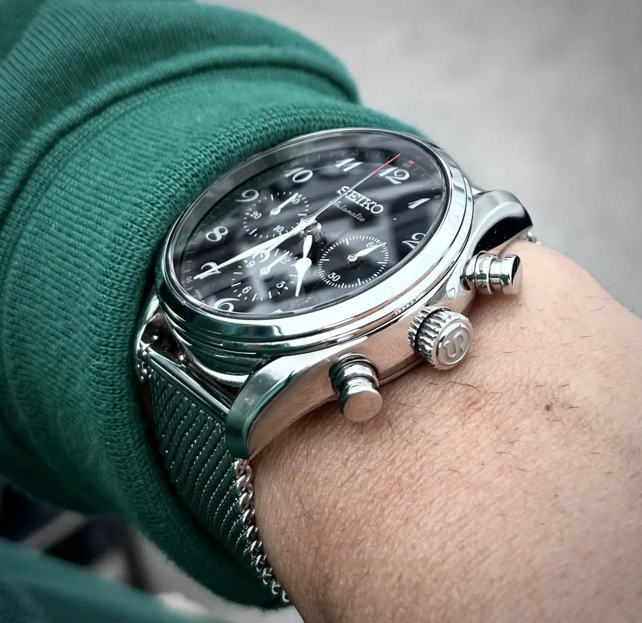 Aunque tenía un seiko que fue a buscar más días de sol en otra muñeca al que también le quedaba brutal.