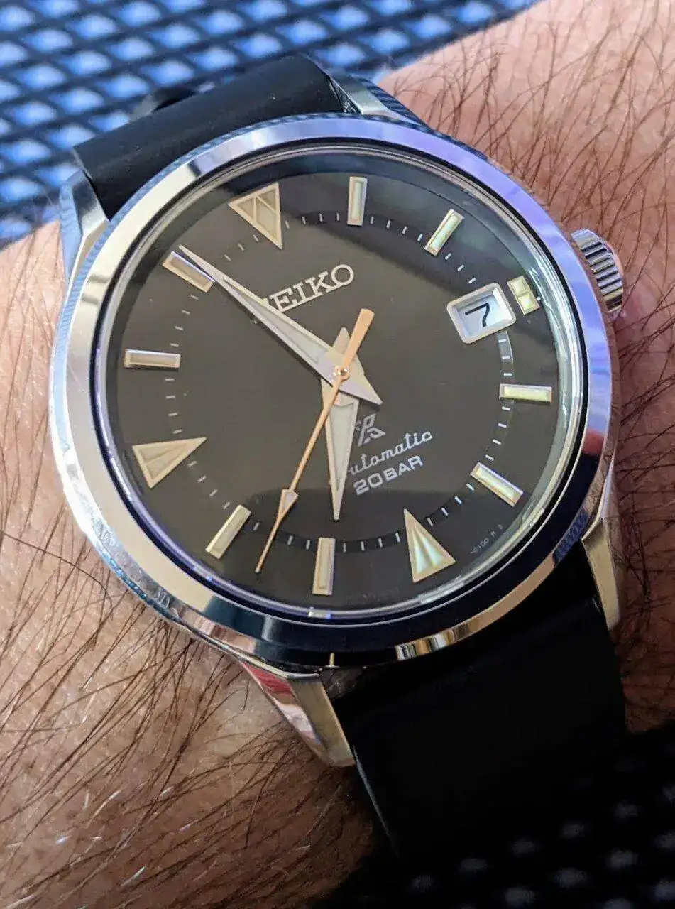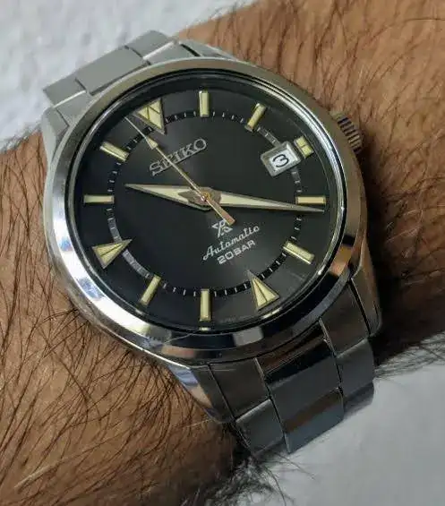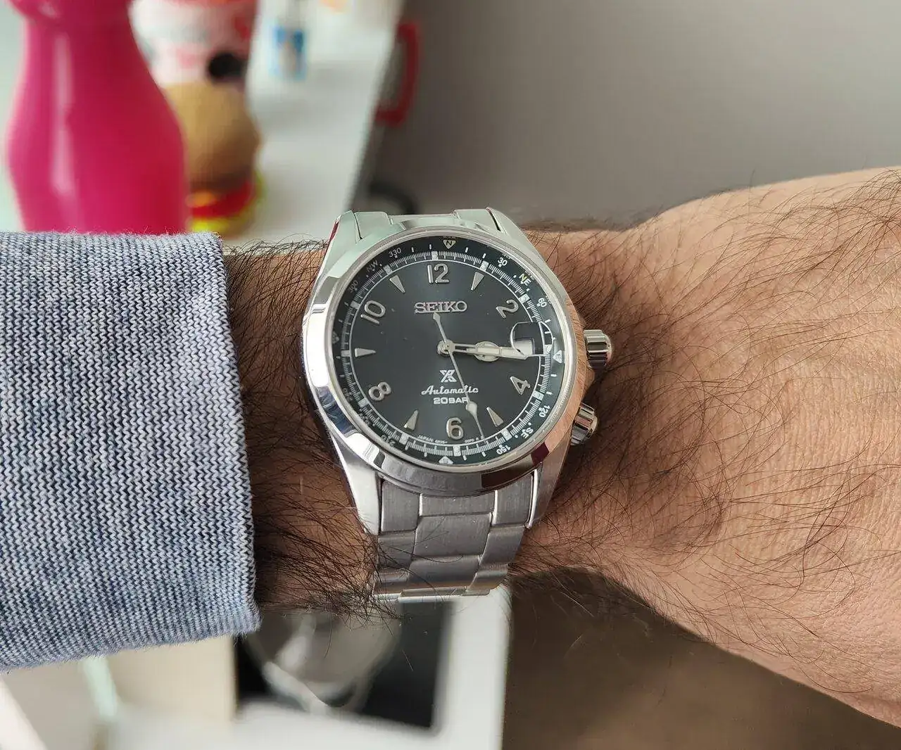 Estaba viendo este hilo, y sigo sorprendido de lo poco que se habla de las reinterpretaciones del Alpinist de 1959, el original. La mayoría son fotos de las diferentes versiones del no menos mítico SARB017. Yo buscaba un reloj para todo, me encantaba las características del SARB017, pero la aguja tipo mercedes y el dial un poco recargado con la brújula y tal... me frenaban en el último momento. Y cuando hace año y pico salieron estas reinterpretaciones, me lo pensé bien poco y me hice con el gris antracita, creo que es el mismo del compañero Tregaskin, saludos compi de reloj. Me llegó un poco desajustado y empezó a perder tiempo, pero lo llevé al SAT, que lo tengo a pie de mi casa y me lo pusieron a punto.