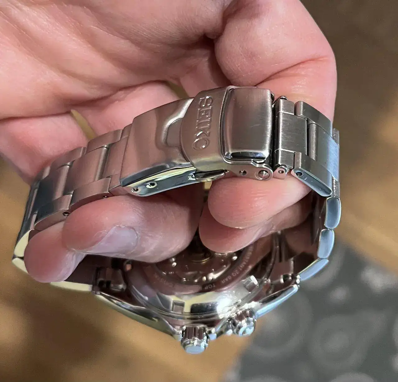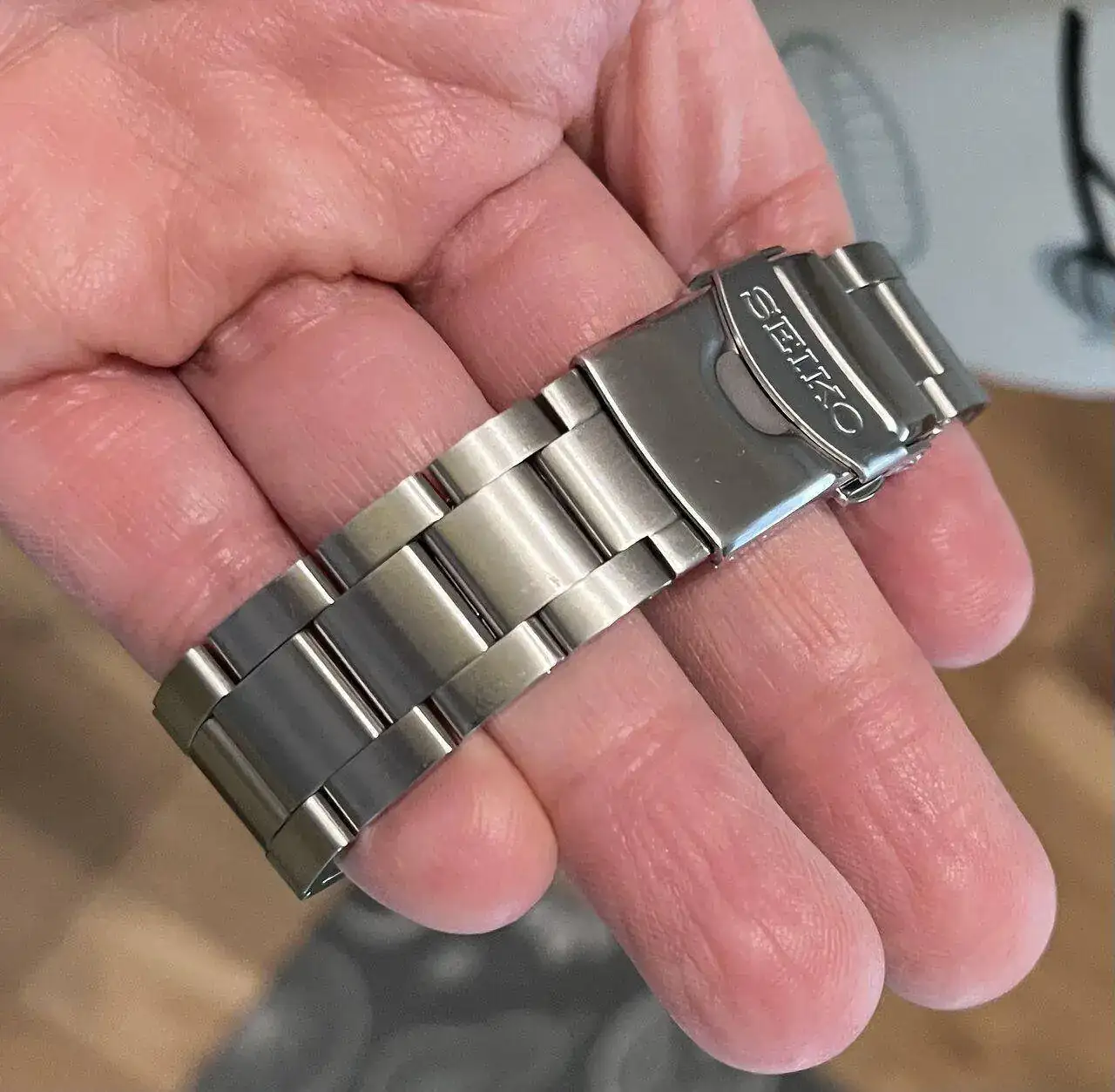 Interesante solución... Gracias por compartirla!Buenas de nuevo compañeros, como no soy el único con el problema del brazalete quería compartir una solución bastante acertada al menos en mi caso, tenía por casa un Seiko 5Sports de la serie nueva (SRPE55) al cual he intercambiado los cierres y ha quedado perfecto ya que los eslabones tienen el mismo tono, diseño y testura, este también tiene dos micro ajustes nada más pero la distancia entre ellos es mayor y en mi caso me queda muy bien, aparte ganas en seguridad ya que tiene doble cierre y el original sólo uno a presión muy fácil de abrirse accidentalmente (poco acertado en un reloj aventurero..), también lo noto más cómodo ya que aunque es de chapas dobladas estás son más anchas y asientan mucho mejor a la muñeca amén de quedar estéticamente más integrado, sin esa especie de “boca de buzón” que se ve en el de origen, además paradójicamente el Seiko 5 me queda perfecto así que los dos son perfectamente utilizables, espero que le sirva de ayuda para alguien, os dejo unas fotos ya intercambiados, la última correspondiente al 5Sports, el cierre de este Seiko5 es muy común incluso con más microajustes por lo que no será difícil conseguir uno, perdón por la chapa con este tema que no interesa a muchos pero a los pocos que si puede ser una gran solución a un dolor de cabeza…saludos Ver el archivos adjunto 2611914Ver el archivos adjunto 2611915Ver el archivos adjunto 2611916Ver el archivos adjunto 2611917
