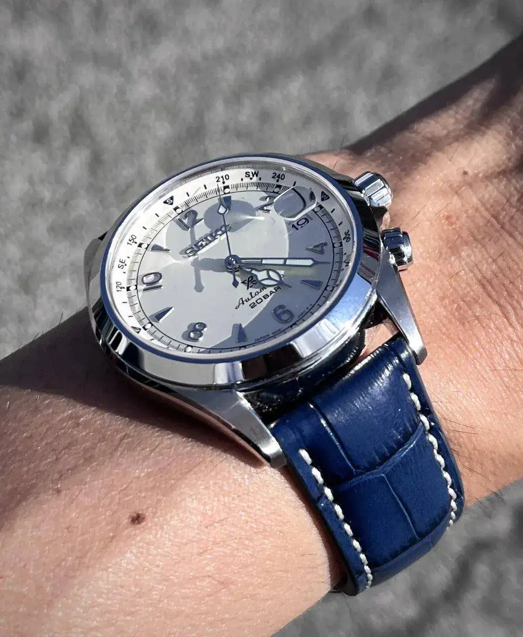 Queda muy bonito y elegante, me gusta mucho para el verano. Solo le faltaba que el Alpinist hubiese tenido unas agujas azules, pero le queda preciosa.Hoy estrenando correa azul con pespunte en blanco crema …
