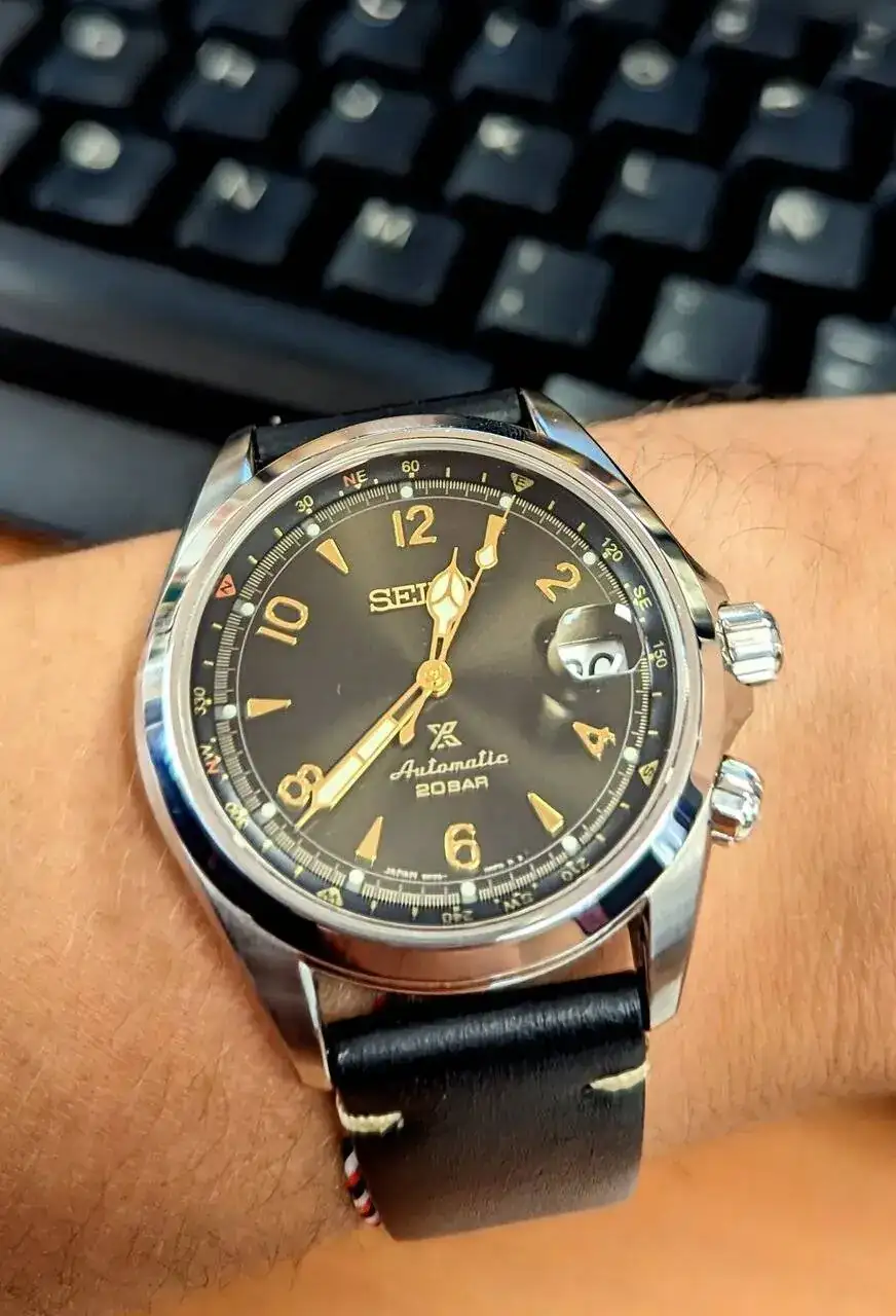 Bienvenido!!!Pues otro que se une al hilo de los alpinistas. En principio iba con la idea del verde, pero me enamoré del marroncito, menos visto y muy camaleónico, a veces parece verde, otras mokka, otras casi negro y con esos índices dorados contrasta de lujo. Ahora toca empezar a pensar en correas...