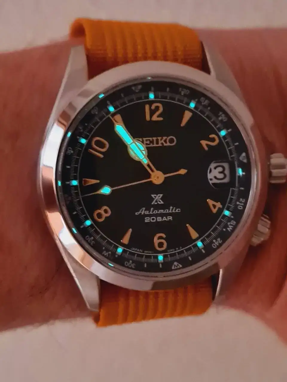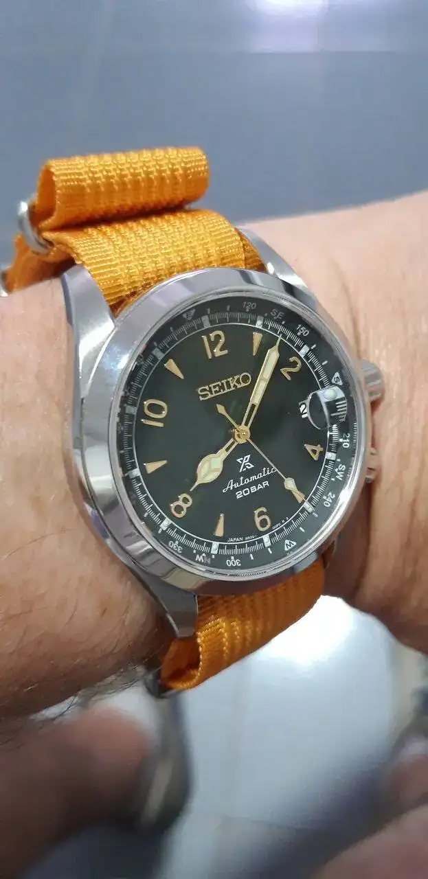 Saliendo del tema armis, es un reloj al que casi cualquier correa le queda de lujo. Es muy agradecido, ahora me lo estoy poniendo mucho con una nato naranja que le queda muy resultona. En fin, si te animas manda foto, mientras tanto ahí van un par de fotos del susodicho.