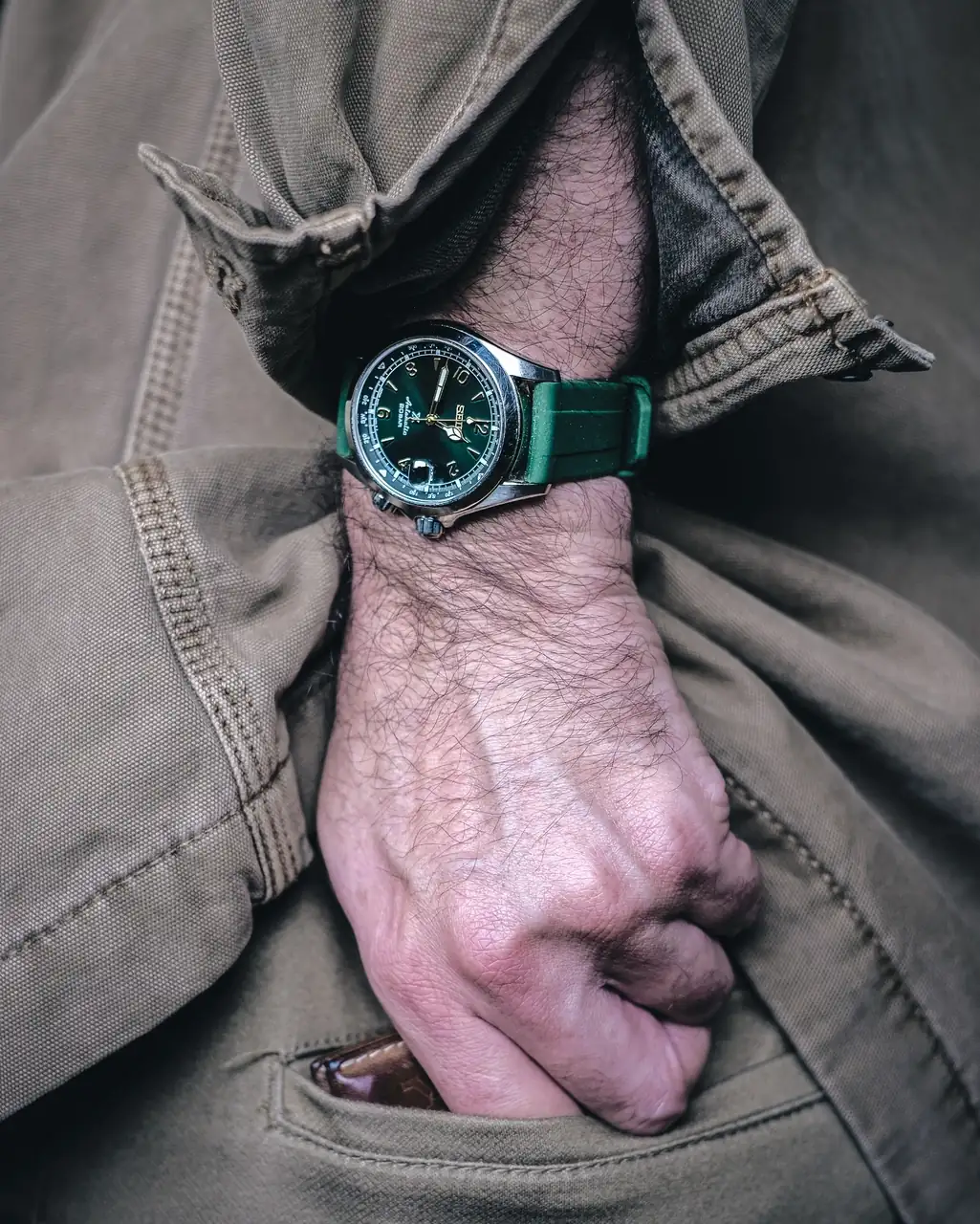 Muy chulo, al Alpinist le queda bien cualquier correa, en especial las de cuero. Por cierto, piénsate lo del Smiths, que es un relojazo y super funcional pero seguro que resulta compatible con el Alpinist! 😁Esta vez probándolo con una correa de goma verde. A ver que os parece:
