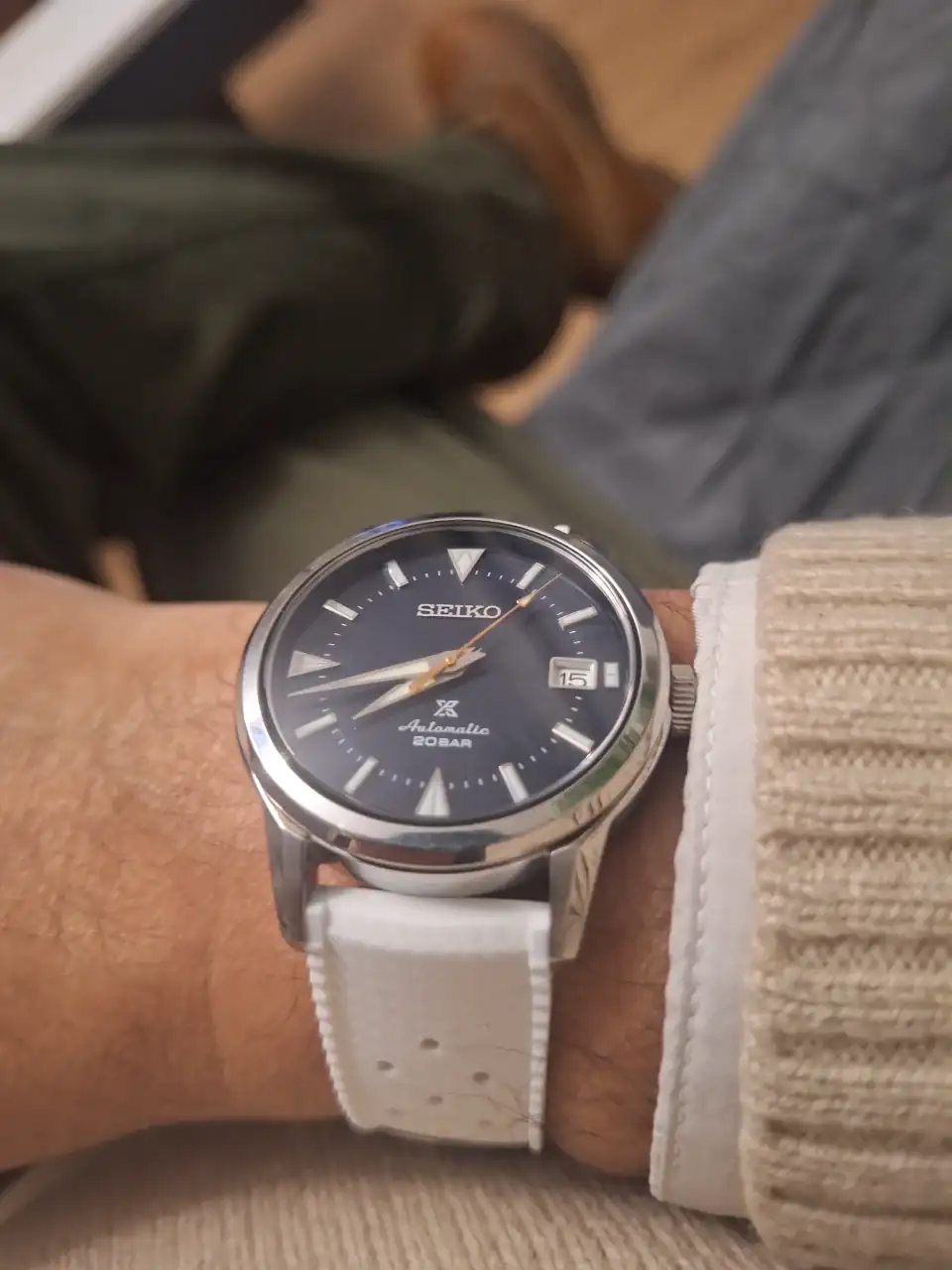 Buenas compañero, bienvenido al rincón, los brazaletes para el Alpinis tienen que ser específicos, incluso no valen los del modelo anterior Sarb a los actuales Prospex, los SKX y SKX Series la mayoría son brazaletes de 22mm en lugar de 20 (menos las escasas versiones de 38mm que dudo sean compatibles) , yo le puse el broche de un Seiko5 en el brazalete del SPB117, y le encaja perfecto, no sobresale tanto como el de origen y es más ligero aunque es de “chapas dobladas”, si quieres cambiar de brazalete por uno bueno tienes de irte a Uncle Seiko o Strapcode Miltat , aunque encajases el de algún Seiko 5 perdería puntos ya que no suelen tener los eslabones principales macizos como los de origen, la caja es pulida pero las asas también tienen partes cepilladas, ya nos lo presentarás, compañero, saludosHola chicos,