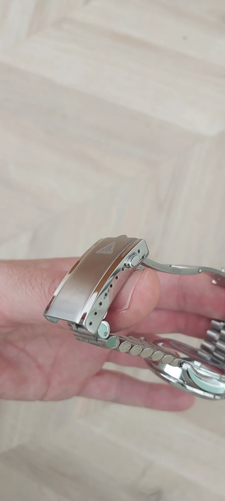 No es de chapa, desde que lo vi por primera vez en la web de forstner fue el brazalete que mas me gusto, faltaba el reloj para ponerlo. Lo unico que si le veo pero en general del reloj, es que tiene demasiada superficie pulida, hubiera molado más cepillado, en ese aspecto el brazalete original que llevas tu ayuda un poco mas al conjunto. Hubiera estado guai que viniera con el reloj para comparar como le sientan en vivo. Gracias darkiz o Carlos que te tengo fichado en el insta 😂