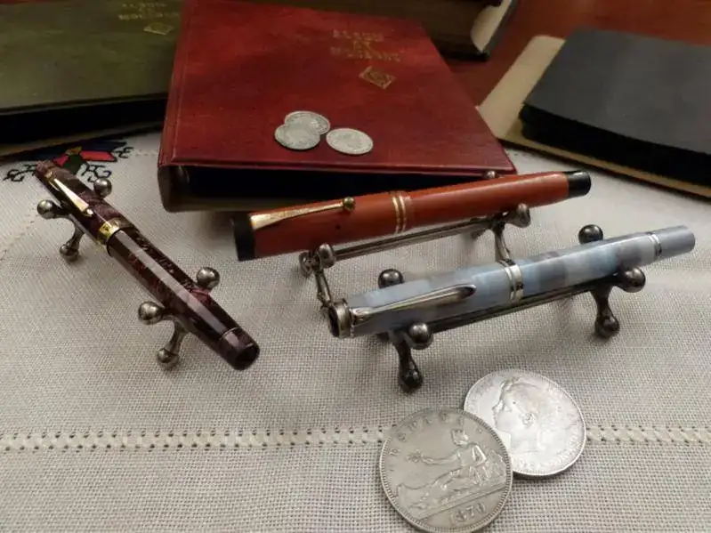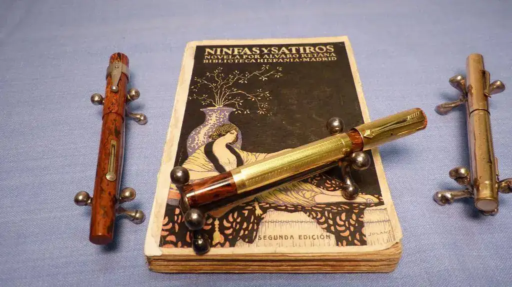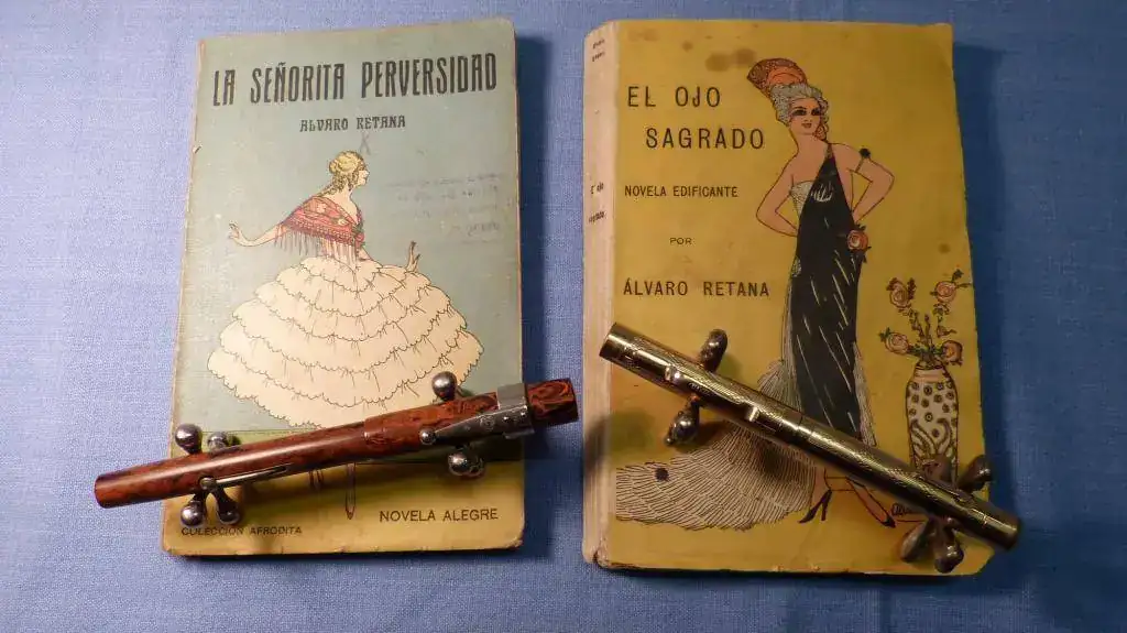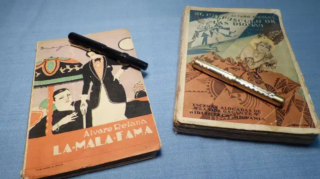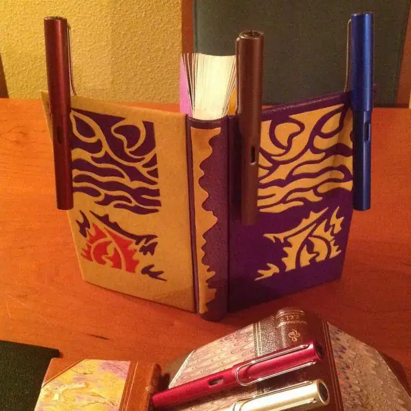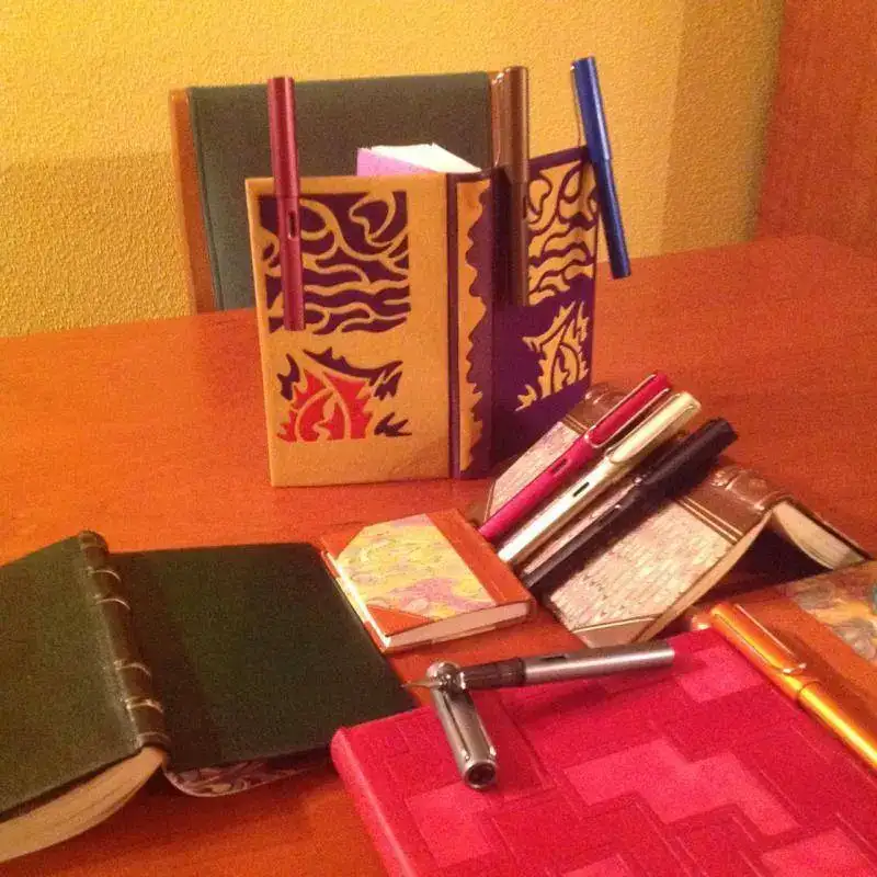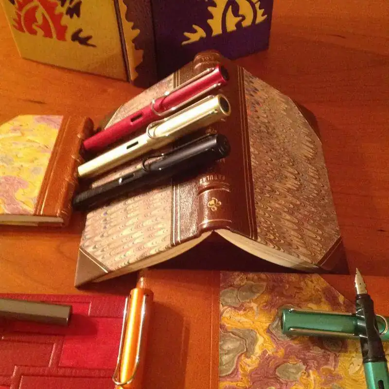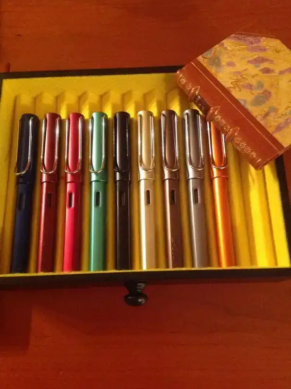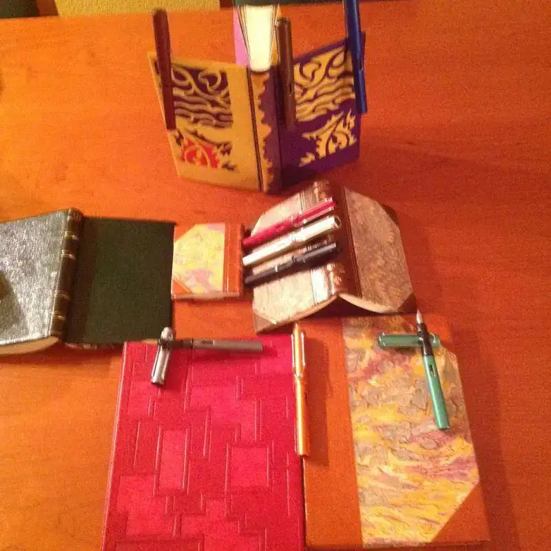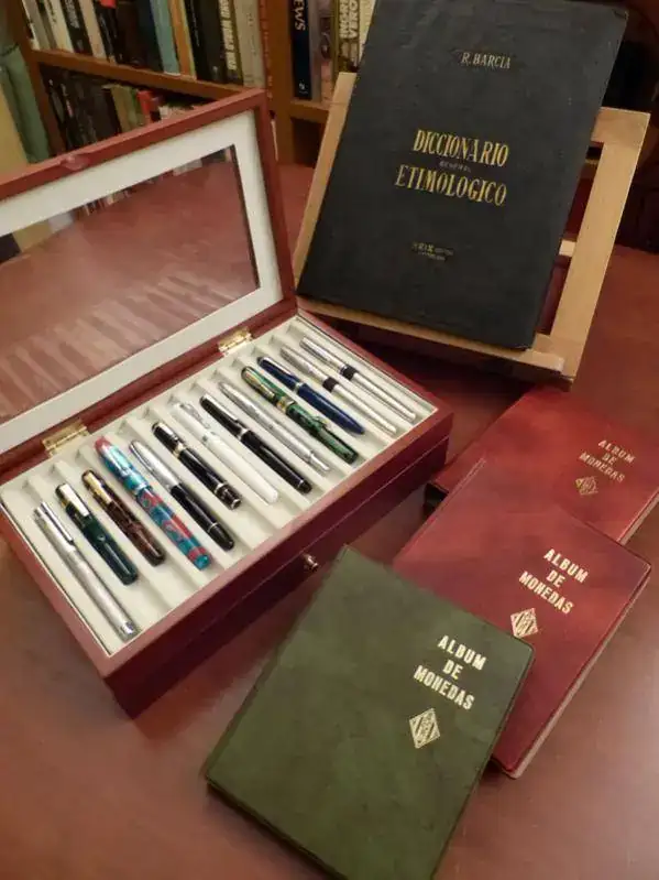 Más que colecciones, junto en mis fotos una colección de plumas (el único modelo que de verdad colecciono, que es la Lami Al Star) con una antigua afición, a la que me dediqué varios años, que es la de encuadernación artística. Los pocos libros que me quedaron los he colocado intentando aparentear que realmene eran muchos, pero me temo que no cuela. En cualquier caso, aquí quedan las fotos, que estando junto a las de Juanito, segiro que me da algo de suerte