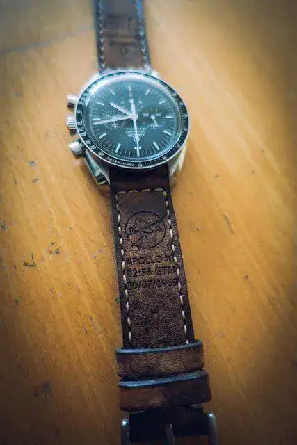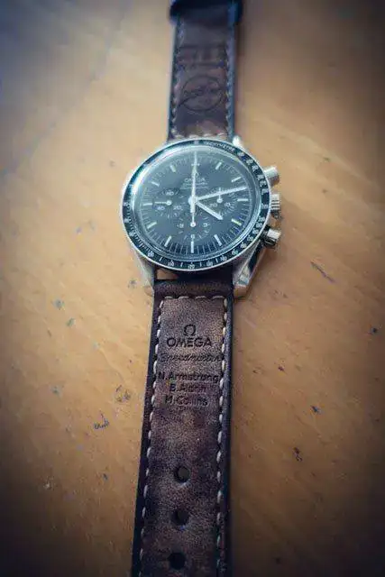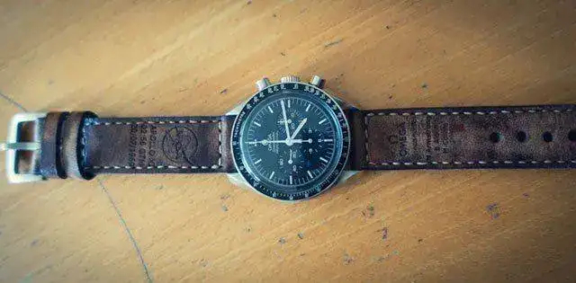 Después de la compra de mi Speedmaster, me rompí la cabeza buscando una correa que me gustara, y al ver la tuya se me encendió la bombilla. Pensé en una correa homenaje a los astronautas del Apolo XI, me puse en contacto con el artesano José María y después de un intercambio de ideas, y de su trato y atención de 10, me llegó lo siguiente: