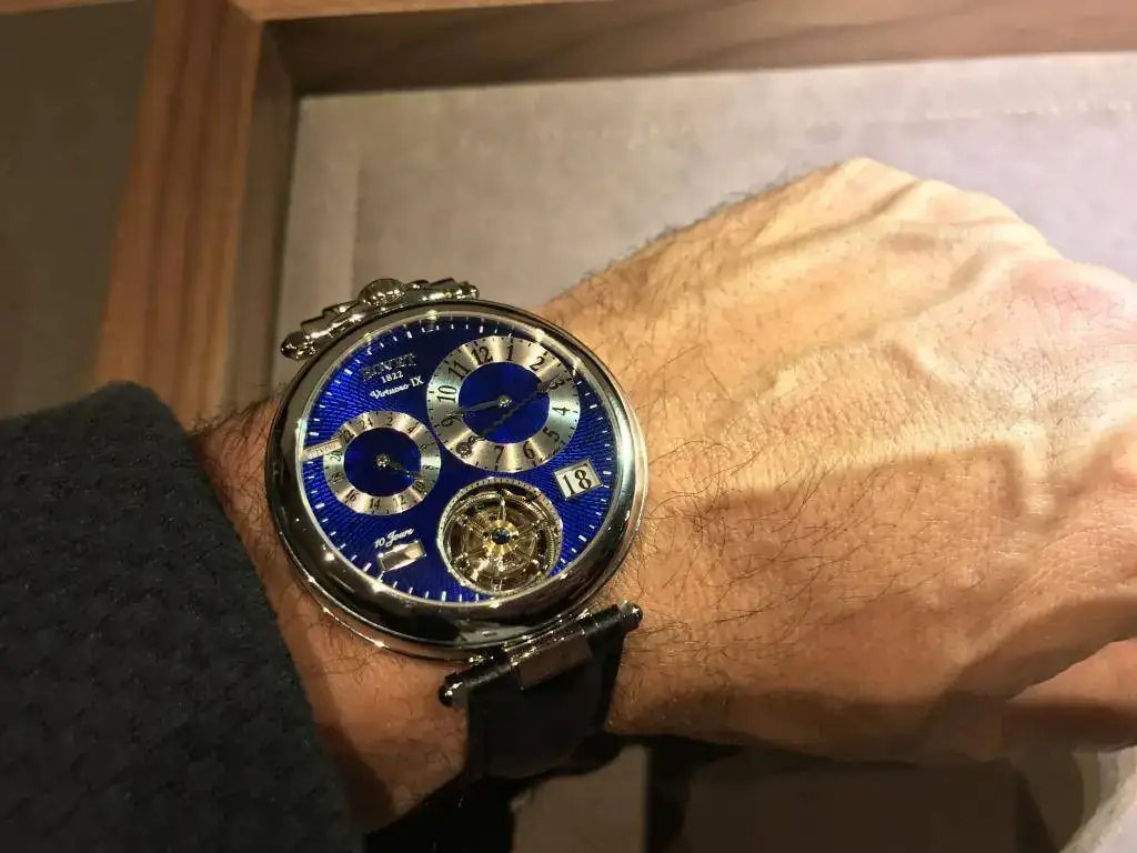 Lo mejor, que empiezan a racionalizar el regalazo que les cayó en forma de Minerva y que ya no tienen el estigma de estar intentando crear una JLC low cost. Precios de entrada alrdedor de 4.000 €, un calendario perpetuo de manufactura (muy bonito, por cierto) por 18.000 € y cronos monopulsador por alrededor de 25.000.