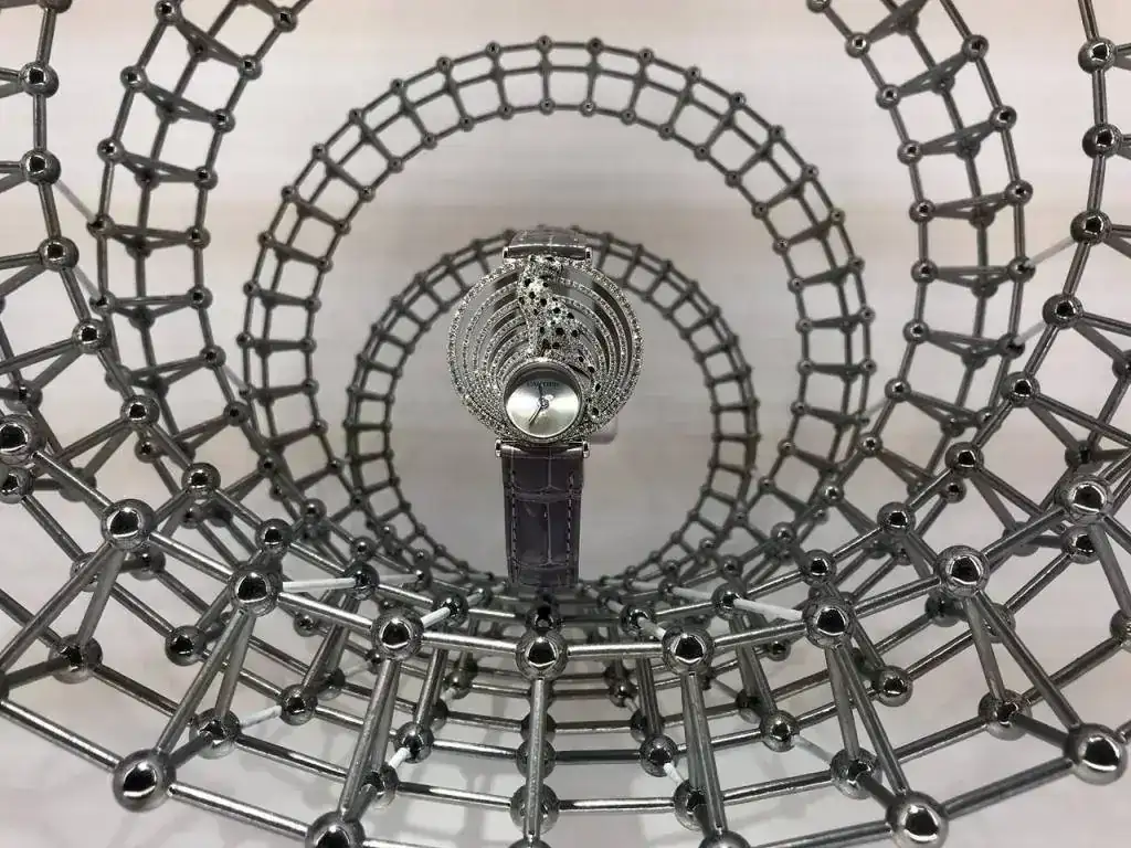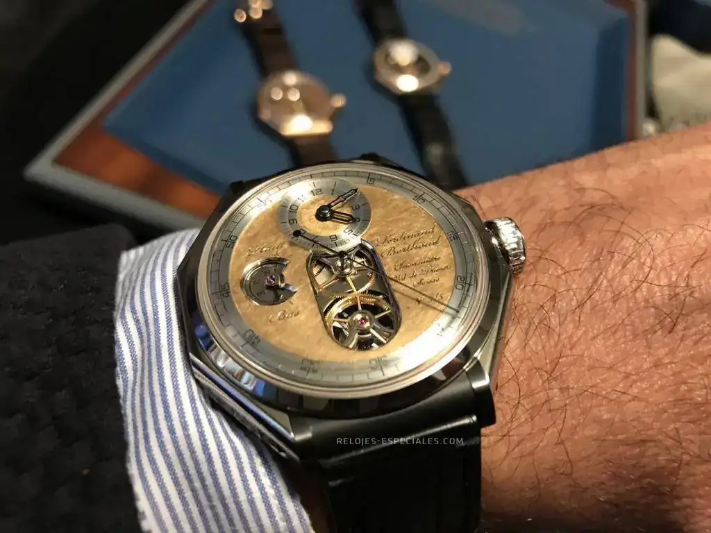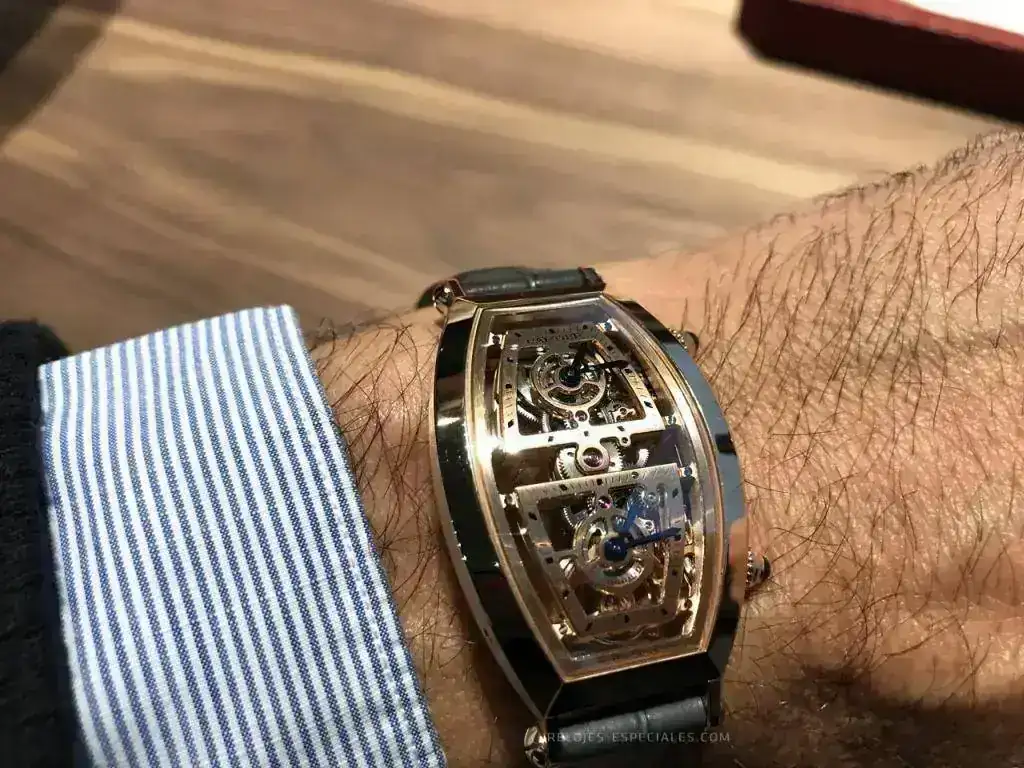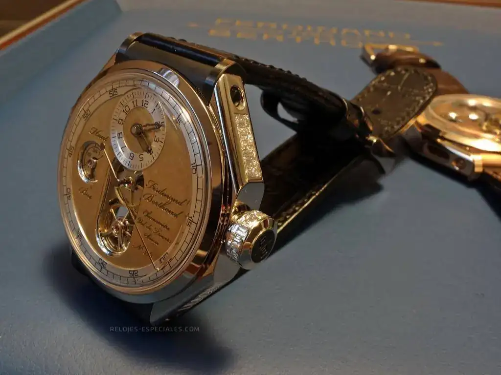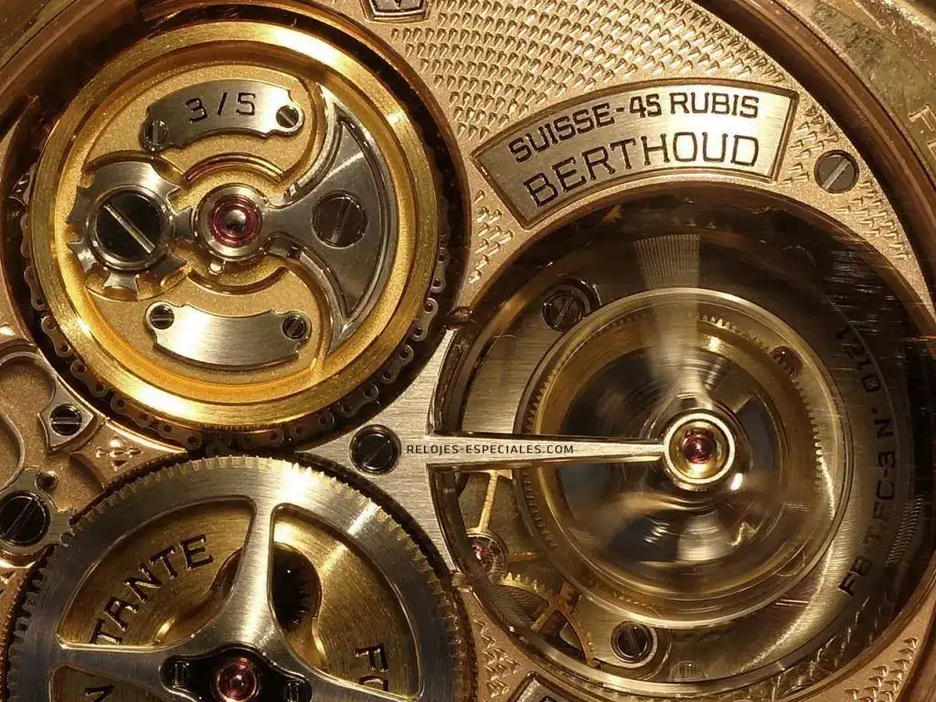 Pasamos ahora a Ferdinand Berthoud, un nombre que Karl F. Scheufele, co-presidente de Chopard, se empeño en recuperar para ponérselo a la marca de la relojería más sofisticada de su grupo, aunque funciona como independiente y se inscribe en el "Carré d'Horlogers", una zona dentro del SIHH dedicada a ellos. Hace cronómetros de marina tamaño muñeca. Es una marca muy joven (no más de cuatro años), y propone series limitadas de piezas exquisitas. Las de este año se llaman FB-1 Oeuvre d'Or por razones que vas a ver enseguida. Son dos series de cinco unidades, una de ellas con caja de oro gris con diamantes talla baguette (que es lo que le pide cierto tipo de clientes) y la otra en oro rosa.