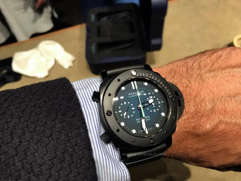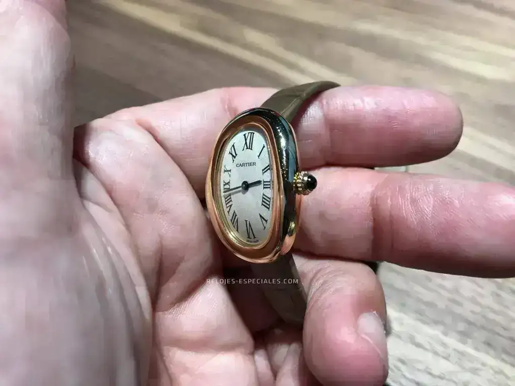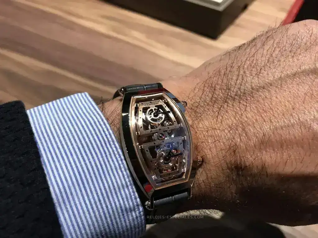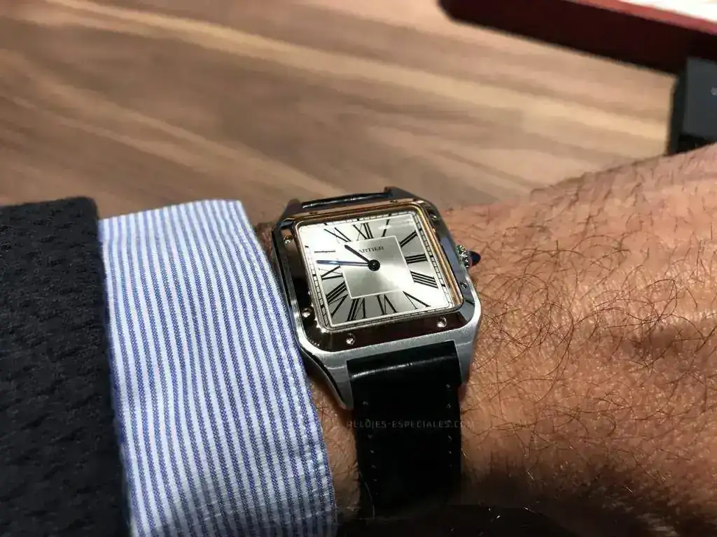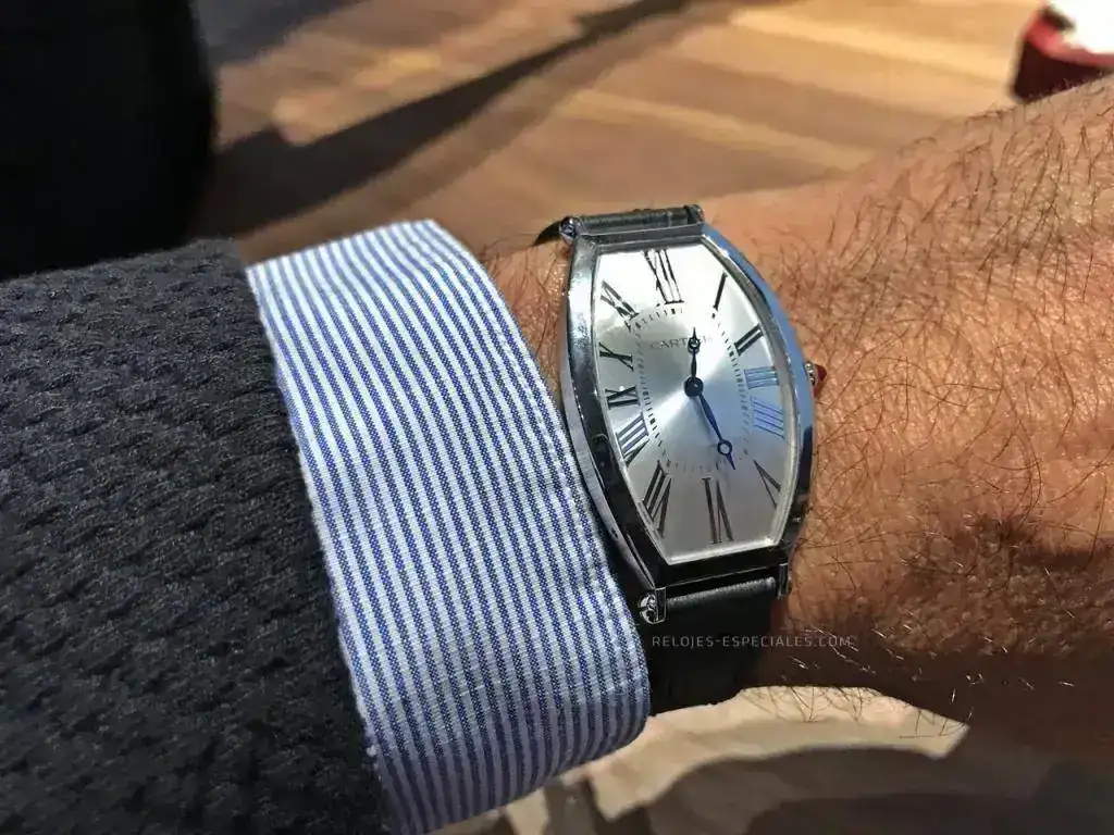 Pero no sólo hay cuarzos. El Santos XL sigue por aquí y trae un crono bastante contundente. Manufactura Cartier, arranca y para con el pulsador a las nueve y resetea pulsando la corona. Muy suave en ambas acciones.