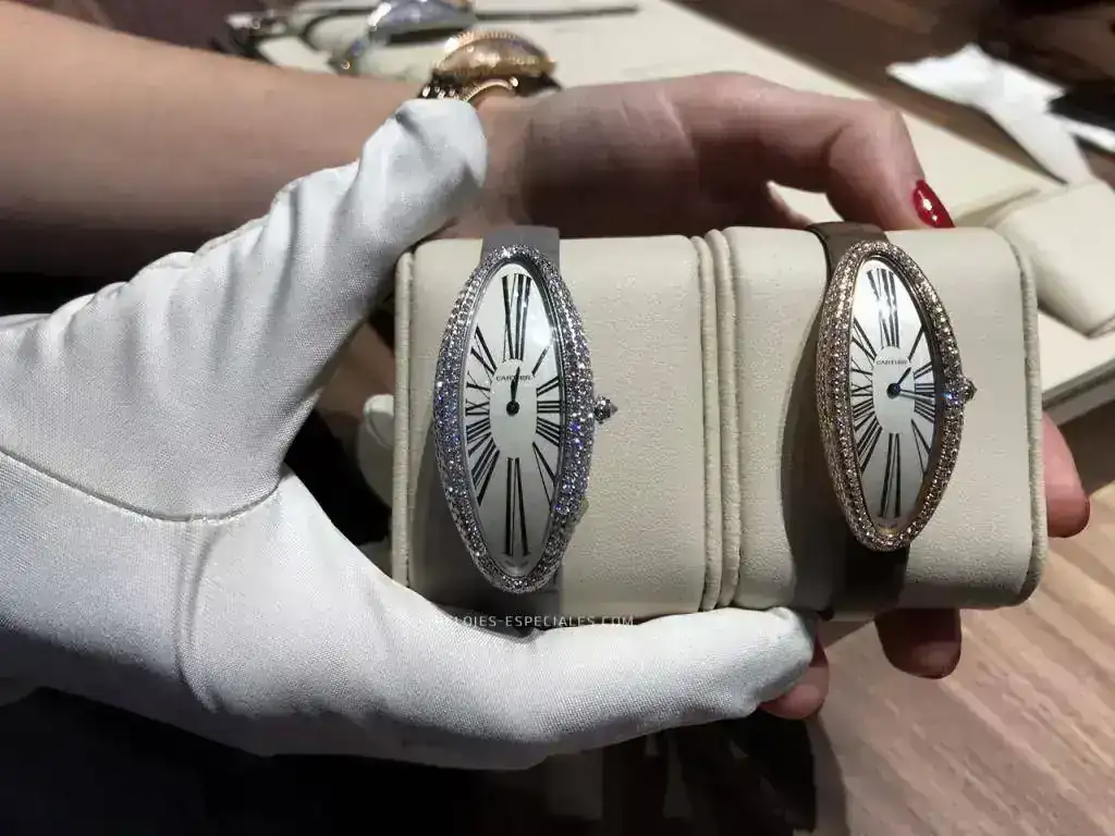 Bromas también aparte, empiezo por Cartier y sus piezas femeninas, que podéis saltaros para ir a las masculinas, que valen -y mucho- la pena y una propina de Ferdinand Berthoud, la marca super-relojera de Chopard, con ediciones de cinco ejemplares.