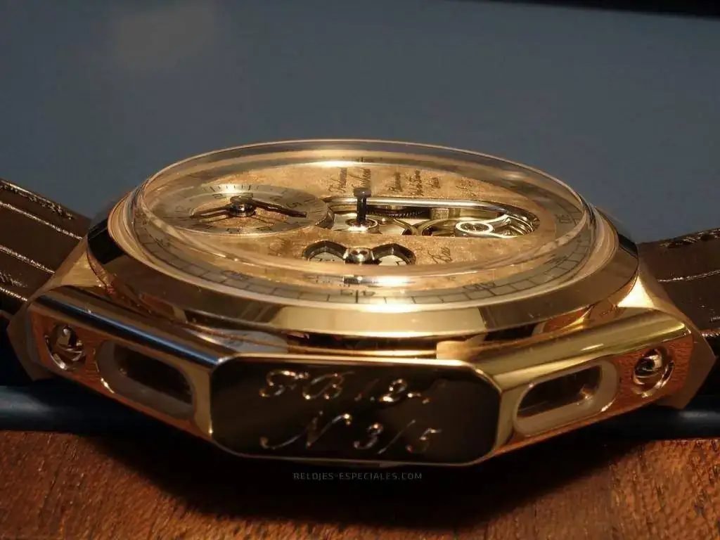 Otra diferencia con las primeras versiones y que justifica su nombre es que la pletina posterior es también de oro rosa de 18 kilates.