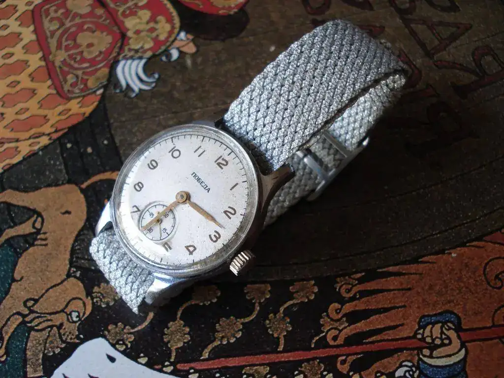 Así es amigos: parece que no fue el conocido Sturmanskie que acompañó a Gagarin en abril de 1961, sino este discreto Pobeda el primer relojito en subir al espacio a bordo del Sputnik 4 en marzo de 1961. Cierto que no fue en la muñeca de ningún astronauta conocido; de hecho, ni siquiera en la del famoso doomie Ivan Ivanovich. Este intrépido Pobeda viajó atado a la pata de una simpática cosmonauta canina llamada Chernuska