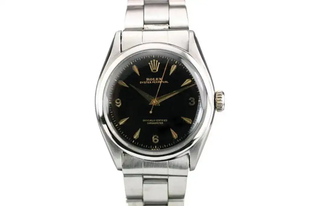 En mi búsqueda (en Google Imágenes, no os creáis) he encontrado bastantes modelos de Oyster Perpetual de esos años, pero casi todos eran de corte muy clásico y sin las manecillas e índices luminiscentes (además, Fleming dice siempre "números" no índices), hasta dar con este modelo de 1950, muy similar al Explorer, y que concuerda con la descripción que hace Fleming del reloj de Bond. Así que, ¿podría ser este el reloj "real" del personaje? He buscado de 1950 porque la primera novela es de 1953, y se supone que Bond está, llevando el mismo reloj en todas las novelas (hasta que se lo carga en ASSDSM). También he encontrado otro Oyster Perpetual que puede ajustarse a esa descripción, pero en este caso hablamos de un Explorer de 1960, y Fleming no dice que sea un Explorer, si no solo un Oyster Perpetual, pero también puede ser.