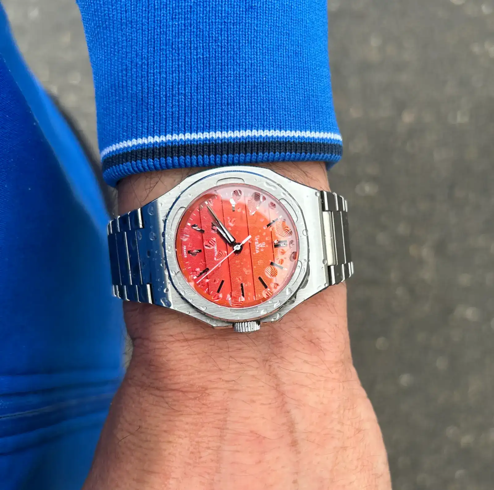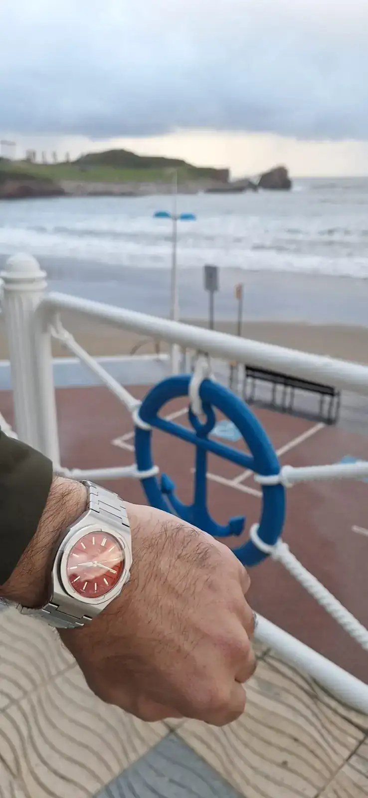 Al recoger el Yema Traveller. lo primero que me llamó la atención fue el peso, que sin ser exagerado (no lo voy a pesar), se siente, transmite personalidad, posiblemente por su brazalete. Lo segundo, fue que la esfera no es muy grande, destacando más la caja y el brazalete, este diseño lo dota de carácter. La medida de la caja es de 39mm, aunque es octogonal y en zonas es de 40mm, el diámetro de la esfera es de 29. Me gustó también el fondo: no se aprecia bien en fotos, pero tiene un relieve muy trabajado. En general, en mi muñeca (18cm) es cómodo y una vez ajustado, no resulta pesado ni cabezón. Los Endlink macho, en este caso, redondean el reloj en mi muñeca y le favorecen. Las agujas blancas, que al principio me parecieron extrañas, me van convenciendo con el paso de las horas. Con los descuentos que ofrece la marca, sinceramente me parece un reloj muy recomendable.