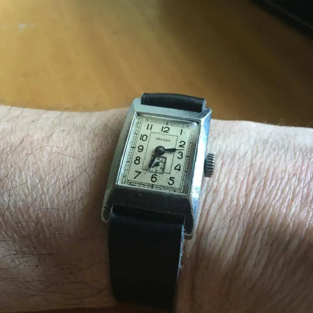 El reloj que os presento hoy es un Zvezda de 1951 (en otro sitio le he dado fecha de 1953 por error), un reloj basado en un clásico de la década de los 30, el Lip T-18, y es un reloj que quiero utilizar con frecuencia. De este reloj y su historia podéis encontrar toda la información necesaria, gracias al compañero Miquel, aquí:
