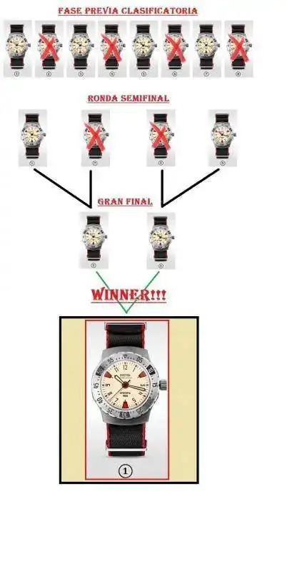 Es que me parece que el color del dial del prypiat que vamos viendo para votar las diferentes fases (agujas etc,...) tiene un tono que poco tiene que ver con las opciones que comercializa el meranom en radiactivos, por eso me pareceria deseable, si fuera factible, poner imagenes con el tono real de los que al final dispondremos para hacernos una idea "ideal y real" del resultado final.