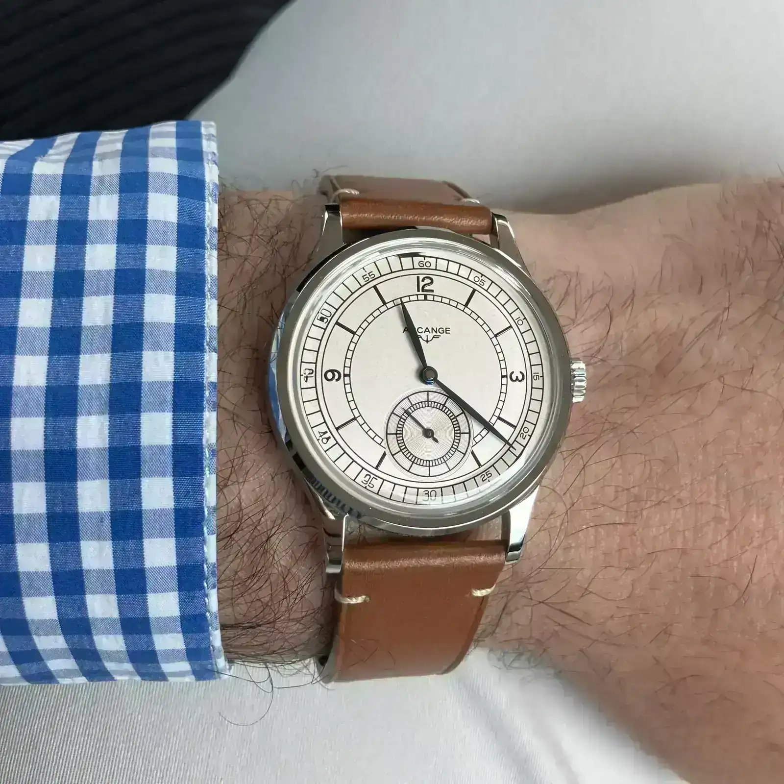 hornada de Arcange (tengo uno de la primera, small seconds con calibre Seagull manual, que no sé por los han descatalogado, yo que quería probar uno azul…), y es una micro que lo hace muy bien.