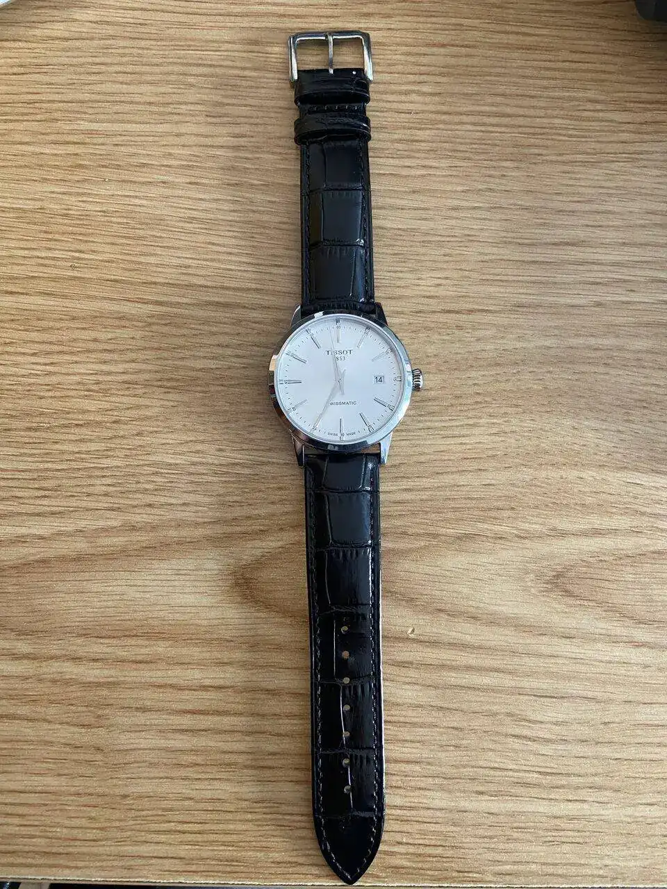 • Opción 1: La opción más clásica, Tissot con correa de piel negra. El Tissot es el reloj que tengo para estas ocasiones. La que a priori elegiría por aquello de los protocolos con el traje, reloj con correa a juego con zapatos y cinturón etc.
