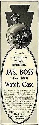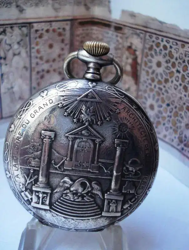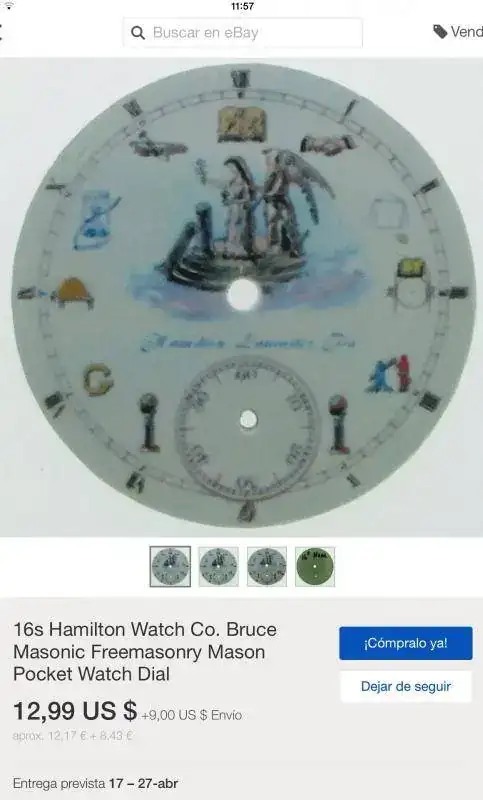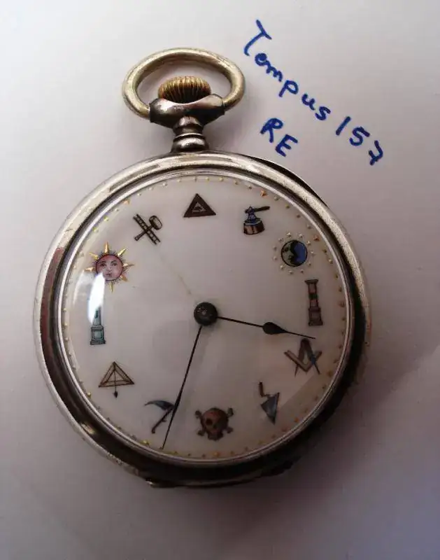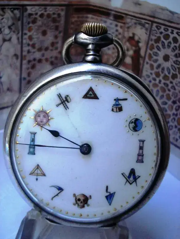 He estado mirando anuncios de la Keystone Watch Co y estos son los modelos de pendant, corona y anilla entre 1880/1890-1900, 1900-1910 y 1910-1920. Pienso que cada estilo se alarga unos años y convive con el siguiente. Si mi suposición es cierta, tu movimiento es de 1894, pero la caja es de un estilo posterior. Pudo cambiarse alrededor de 1905. Yo diría que estoy seguro al 80%. Los relojes no se venden al día siguiente de salir de fábrica y la fecha de cambios en las cajas es aproximada, así que sumas un par de años para venderla y quitas un par de años para la caja... Es posible, pero es un poco forzado. La esfera? Hay evidencias de que se están vendiendo esferas masónicas de fabricación reciente idénticas a la tuya. ¿Qué probabilidades hay de que la tuya sea auténtica? Si te soy sincero, pocas. Depende del origen del reloj. Si se lo has comprado a una viejecita americana que lo recibió de su abuelo... las posibilidades aumentan. Pero ya he indicado como comprobarlo. Sacas la esfera, o le pides a un relojero que lo haga. Si la esfera tiene patitas de sujeción, casi seguro que es original; si no las tiene, seguro que es una sustitución reciente.