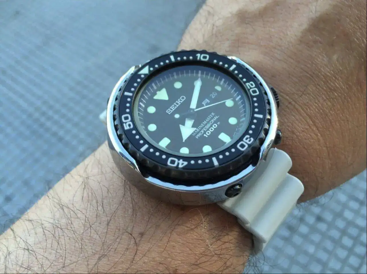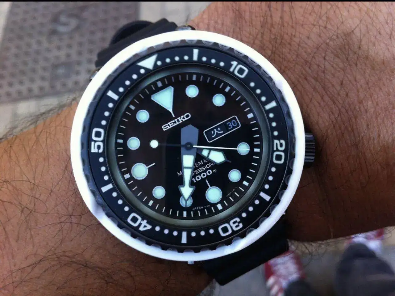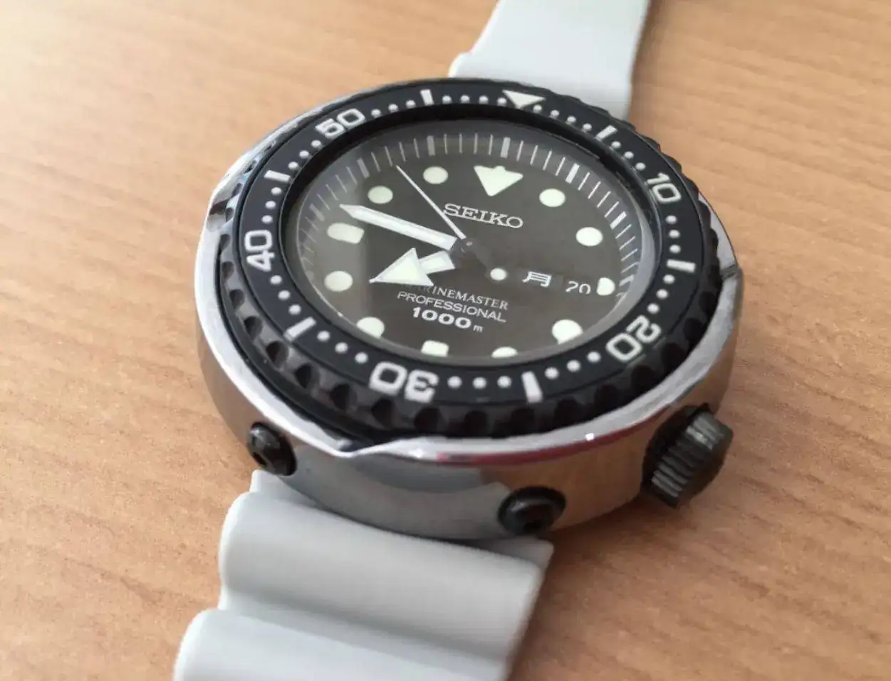 ). Hablamos, como imaginais por el título, del Seiko "Tuna".Hace casi tres años, en la Boutique Seiko, empecé a mirar estos modelos con curiosidad. Sinceramente ningún diver de Seiko me había enamorado lo suficiente, pero quería seguir probando... Como era de esperar los encontré absurdamente grandes para mi muñeca de 16cm. Pero oye, no parecía ser incompatible del todo. Y sobre todo era diferente... Muy diferente.