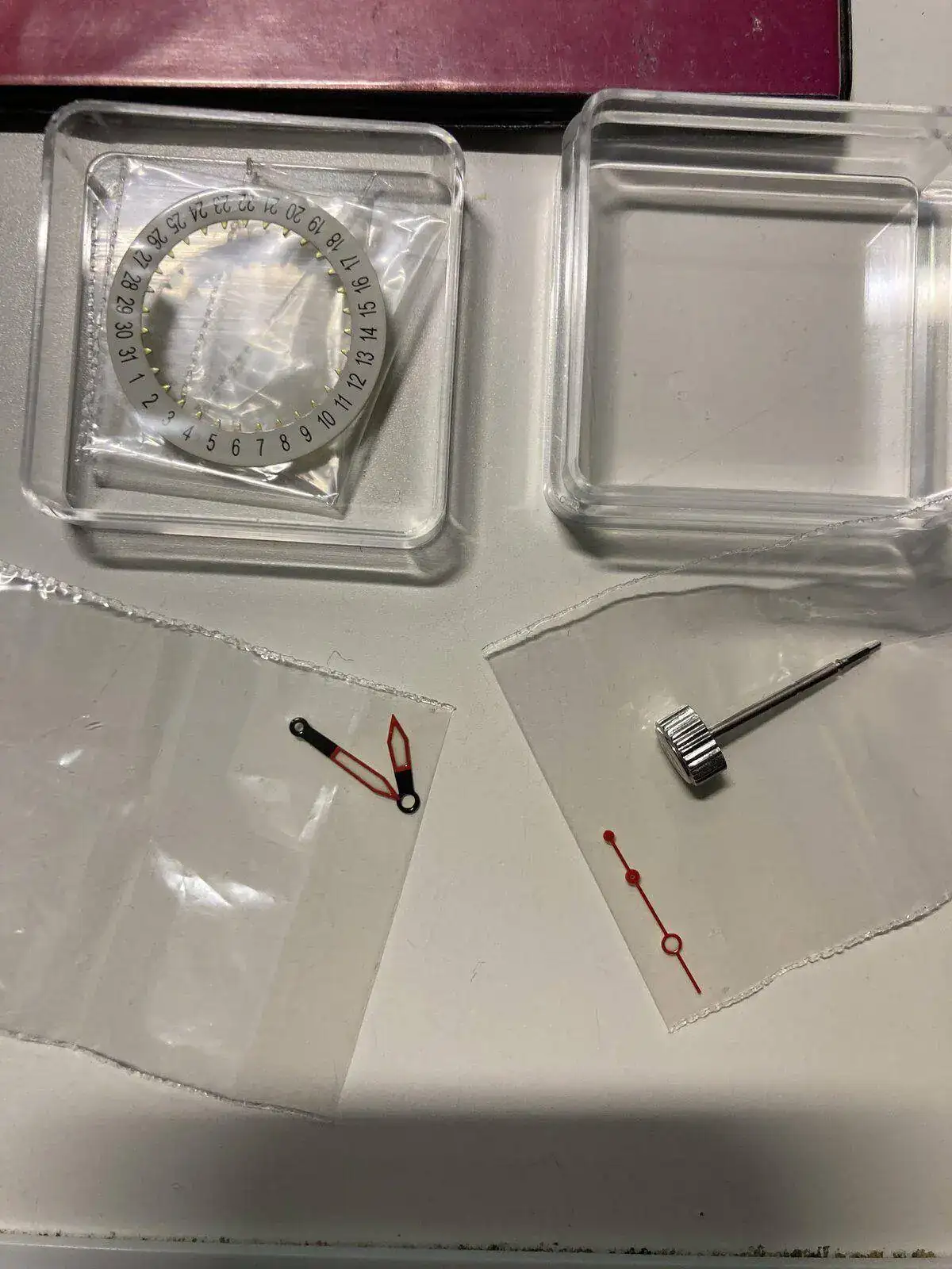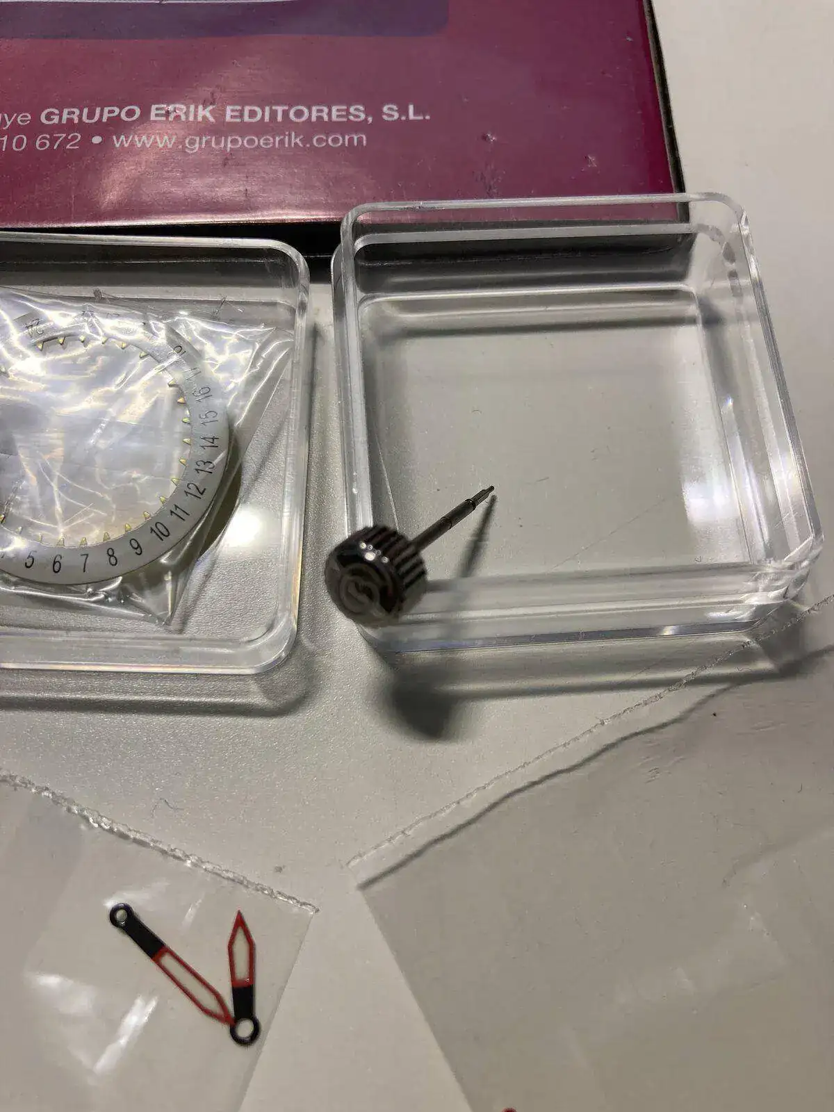 Hola compañeros, el tema es que me decidí a comprar unas piezas, para hacer mi primer mod y ya con mal pie empezamos..... Compre unas agujas de hora y segundero y un disco calendario nuevo mas legible que el que lleva mi komandirskie 24h, dado que también quería cambiarle la corona pero del todo imposible por que nunca había stock, zasca me envían un correo que había disponibilidad de la susodicha corona, con el logo y para cajas 65, el caso es que la compro al vuelo en vostok- 24watches y casi al mismo tiempo me lo envían todo, llego al mismo tiempo, ayer, cual es mi sorpresa que la corona no hay manera de encajarla, quité la de serie todo correcto, voy a colocar la nueva y no hay forma, lo típico, sudores fríos, creía hasta que me había cargado el tirete, en fin al cabo de un rato ya desisto coloco la antigua y a la primera puesta, en fin ya he observado de cerca, medido, y no veo nada raro en la nueva que indique que este defectuosa ni nada raro, pero el caso es que no se queda retenida, en fin, como creo que mas de uno habrá cambiado la corona a su ruso, era por si me dabais alguno, algún tipo de información al respecto, o alguna indicación de como colocarla si existe algún truquillo o algo parecido, el tema es que ahí esta la corona muerta de risa, como para pedir reemplazo, si cuando hice el pedido y termine el pago ya no había ninguna en stock otra vez, si pido un cambio puede que lo reciba como pronto para la jubilación, que mal rollo.