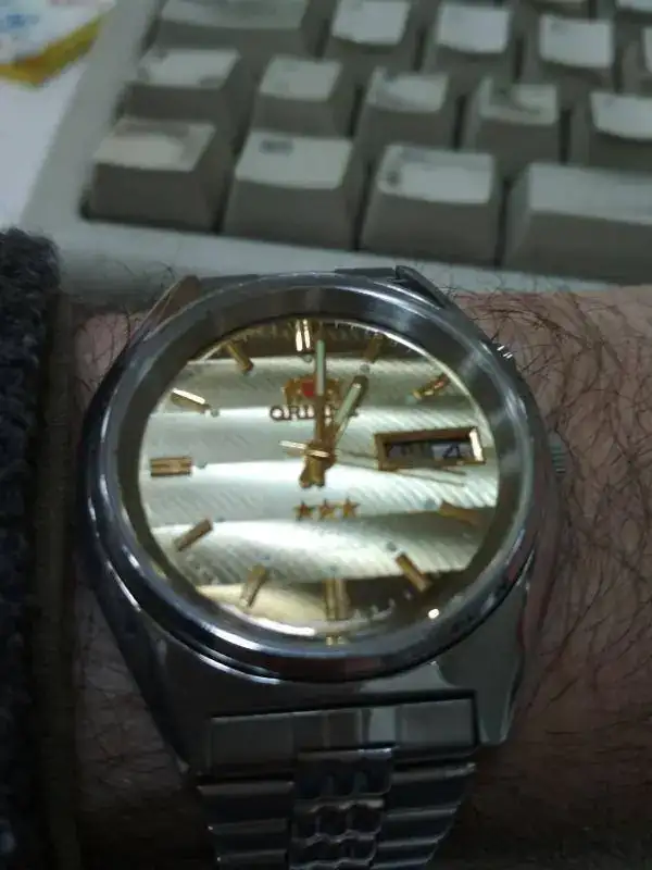 Un orient automático de los ochenta, con una esfera preciosa y una marcha espectacular. Me acompañará toda la semana.