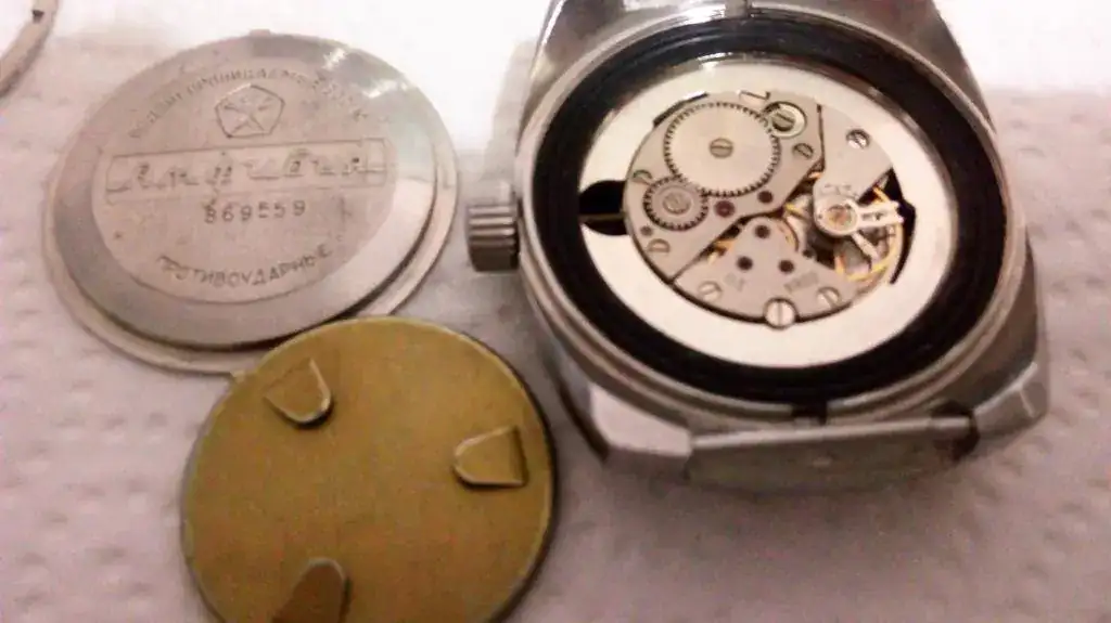 Mi primera impresión, muy muy buena; la verdad es que esta combinación de colores me fascina, la foto magnifica el paso de los años en el reloj, al natural se ve fantástico, hasta aún conserva parte de la pintura roja del marcador de las 12h. Este modelo en concreto, es soviético destinado al mercado interno, con los caracteres en cirílico (a diferencia del anterior 119) y con la particularidad que en su trasera luce el sello de calidad otorgado por una agencia estatal creada en 1964. Esta K invertida procede del término ruso "kachetsva" que en español se traduce como "calidad". Si quereis saber más, aquí https://en.wikipedia.org/wiki/State_quality_mark_of_the_USSR