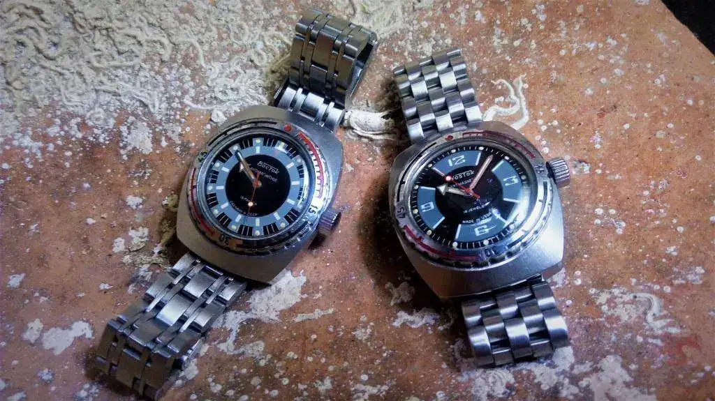 Enamorado como estoy de los diver vintages y de los relojes rusos y feliz como estaba con la llegada de mi primer vostok amphibia vintage https://relojes-especiales.com/threads/presentación-del-recién-llegado-vostok-amphibia-119.437173/ No me pude resistir a la tentación de buscar a su "hermano" buzo El segundo de la foto; En principio lo buscaba con la caja 470 pues me encanta este dial y quería variar de caja, pero como no lo encontraba, decidí hacer un "franken" https://relojes-especiales.com/threads/ayuda.437539/ Después de buscar encontré bastantes "frankens" en portales ucranianos...lo que no hagan estos... pero siendo purista como soy con los relojes vintage, decidí esperar y encontré un 119 en muy buenas condiciones estéticas y de funcionamiento, a un precio irrisorio, (cosa que aún no acabo de entender