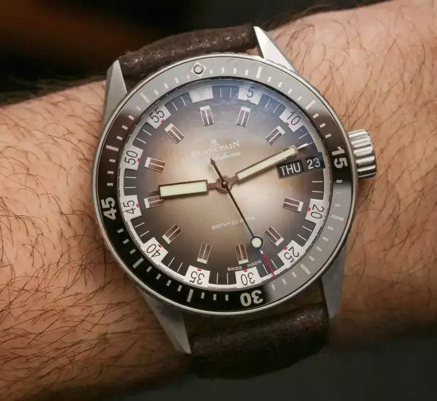 Siempre me ha gustado el Blancpain Fifty Fathoms, pero sus 45mm me parecen demasiados para mi muñeca, y nunca compraría un diver con pulido a espejo. Sin embargo, este fin de semana he tenido la oportunidad de probarme el modelo Bathyscaphe de 43mm con caja de cerámica.