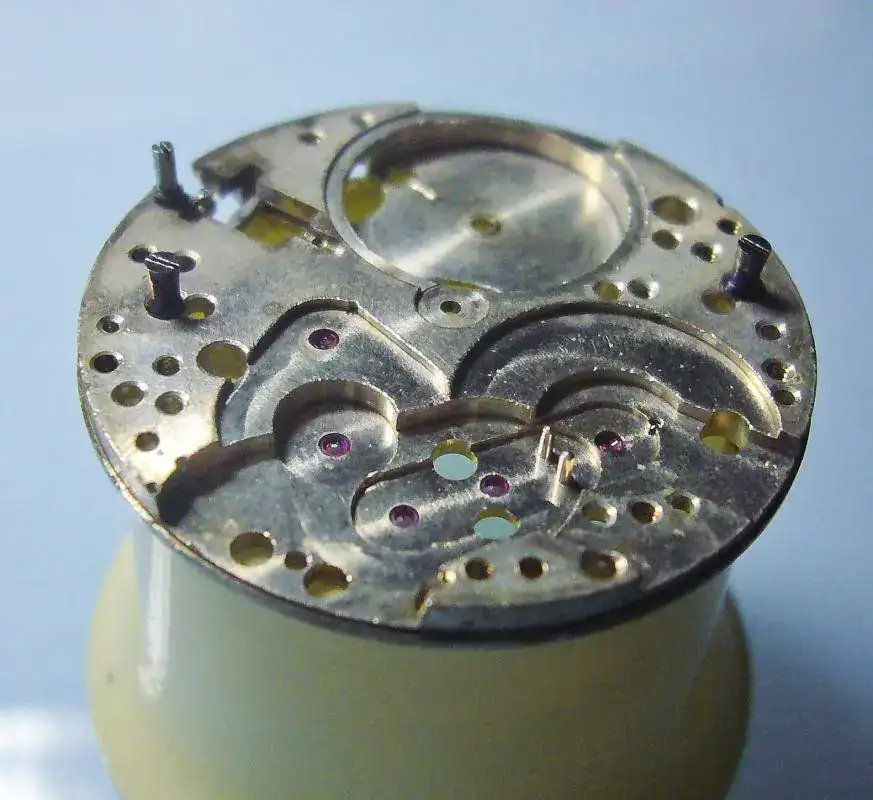 No tiene esta platina el taladro donde se aloja la punta interna de la tija por lo que montar el remontoir es un poco incordio. Pero ¿quién dijo miedo?.