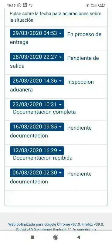 esta mañana he recibido el que estaba en Madrid desde el día 16 de marzo (comprado el 28 de febrero).