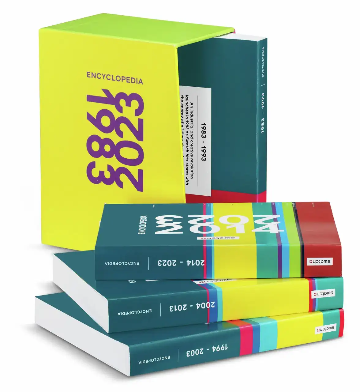 Cada volumen representa una década de la historia de la marca, que abarca desde su nacimiento en 1983 hasta cumplir sus 40 años de funcionamiento en 2023. Desde las primeras innovaciones, como la creación del segundo reloj favorito del mundo y el primer reloj especial del arte de Swatch, hasta los avances más recientes, como SISTEM51 y los diseños BIOCERAMIC WHAT IF?, pasando por colaboraciones como OMEGA X Swatch y Blancpain X Swatch, cada volumen capta la esencia de Swatch a través del tiempo.