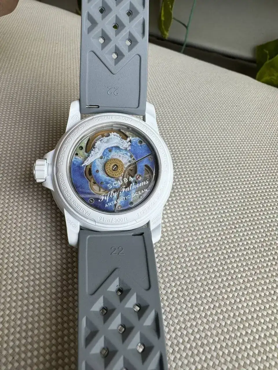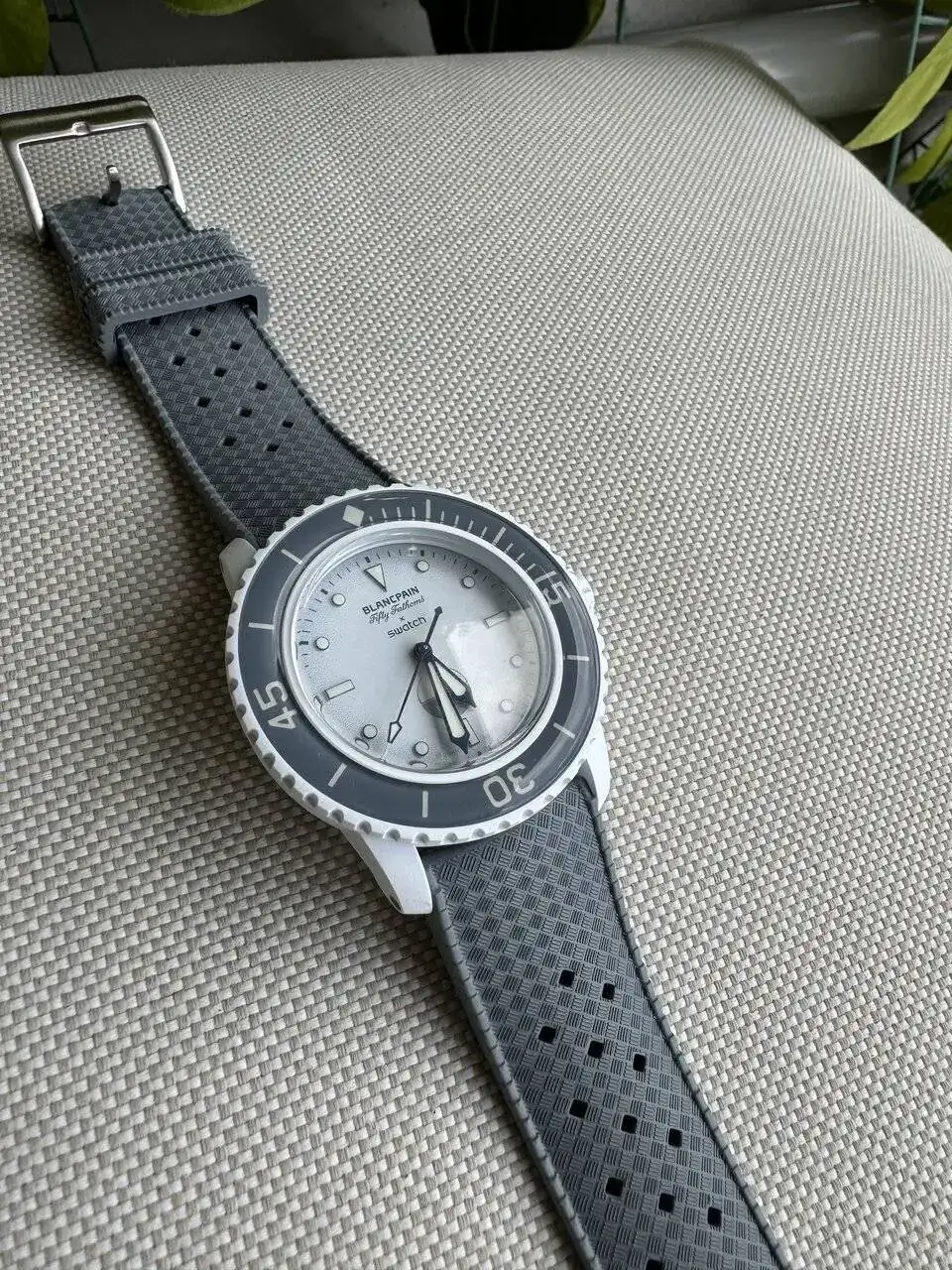 Creo que el reloj gana mucha presencia con una correa tropic. Em este caso una de Amazon que por su precio me ha parecido de buena calidad y cómoda. A demás nos deja ver ese fondo visto del que han proveido al swatchpain.