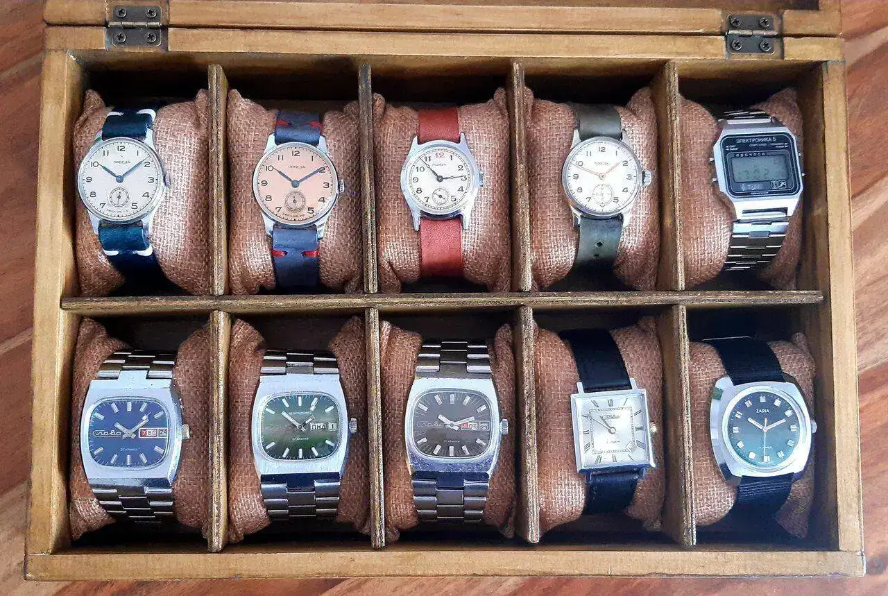 Desde que dedico algo de mi tiempo a curiosear en distintos foros relojeriles, los hilos que más me han llamado la atención han sido los de presentación de las colecciones o cajas que cada aficionado va juntando con los años (o meses, que siempre hay algun ansioso) y que son un buen reflejo de los gutos y manias de cada cual... Como no he visto ningun hilo de este tipo aqui, y dado que he decidido terminar con una racha de compras de relojes rusos que me ha tenido entretenido estos ultimos meses, me lanzo a abrirlo yo, presentando mi caja. Si existe el hilo que comento y no lo he sabido encontrar, con gusto moveré el post.