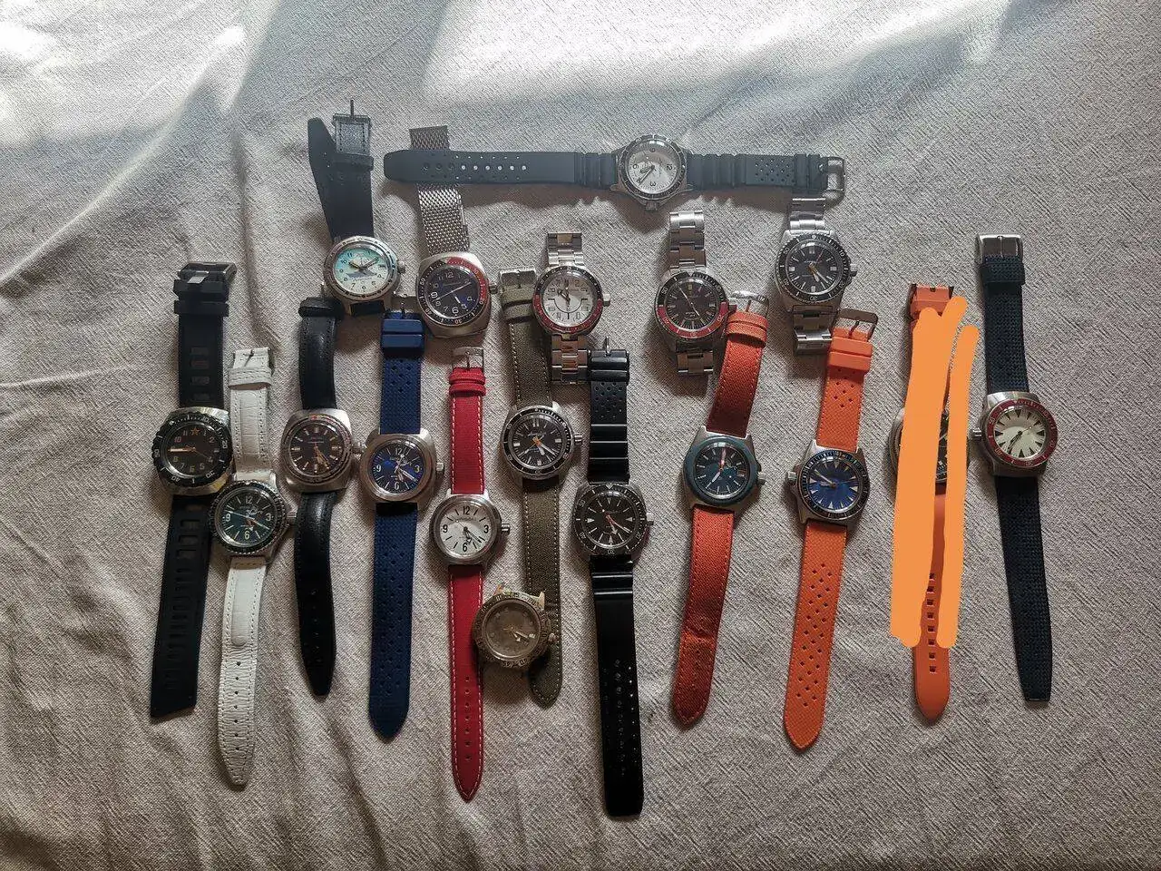 Los pobeda sin correa que veis son relojes a restaurar, algunos parecen (nunca se sabe a ciencia cierta) trabajos fáciles, otros me darán mas trabajo para echarlos a andar y restaurarlos a su configuracion original... en cualquier caso, junto con algun otro ZIM, Mockba, Slava a los que hay que meterles mano, tengo diversion asegurada para estas vacaciones y más allá.