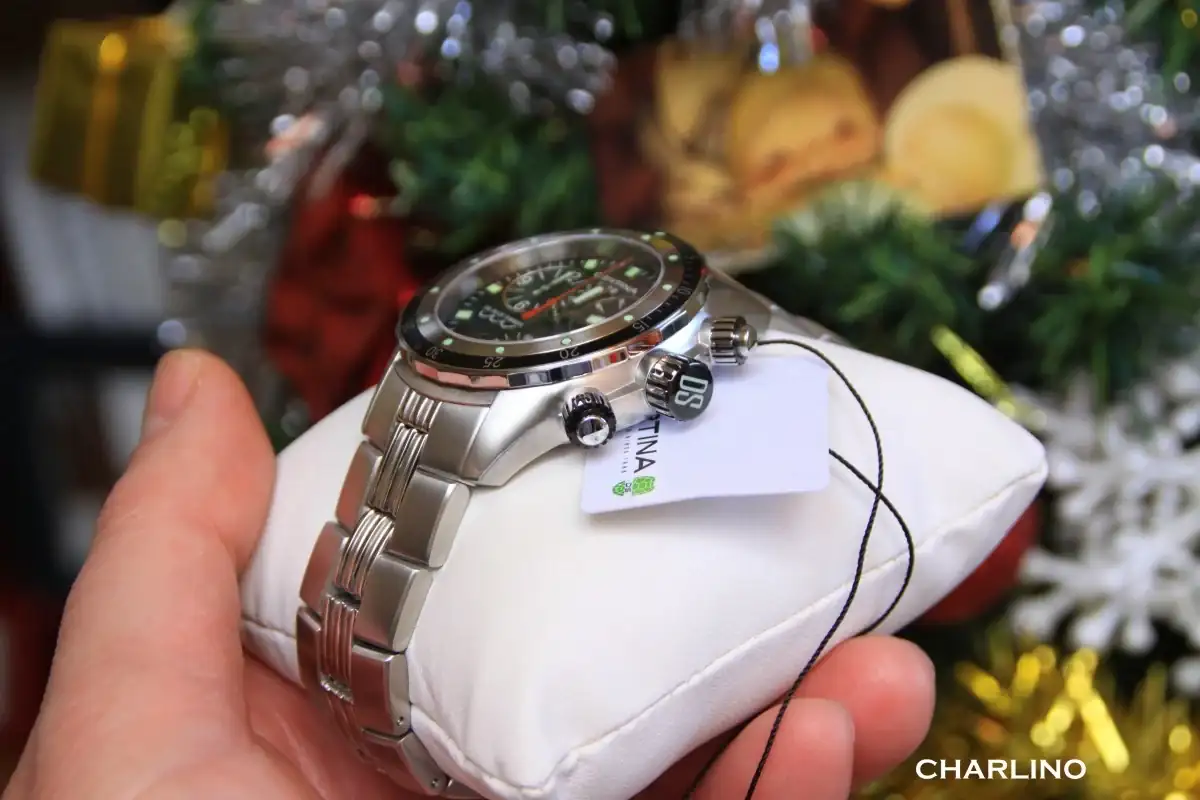 El reloj tiene un cristal de zafiro extra grueso y con un AR muy bueno, que hace que sea fácil de fotografiar, con pocos reflejos a pesar de ser de esfera negra; tiene un lumen excelente, el sistema DS+, que aún no sé exactamente en qué mejora al ya de por sí fiable sistema DS de los Certina, un armis bonito y de calidad, con extensión de buceo, y un más que buen hermetismo de 330M. No le falta de nada, por tener tiene hasta válvula de helio. Sea útil o no lo sea, algo sobre lo que se ha debatido mucho y que realmente me da igual, el caso es que es otra cosa más que tiene este Certina en el que no se escatimó en nada.
