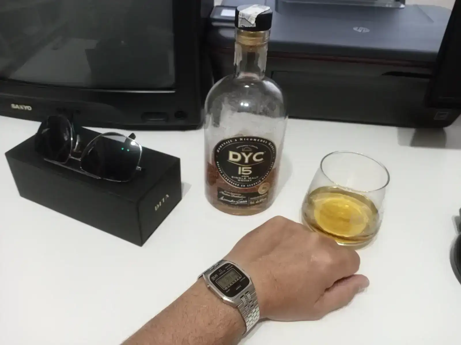 Es una pasada de bonito y parece nuevo. Enhorabuena por tener o encontrar una unidad así!Es hora de relajarse... y como de costumbre un buen whisky y pegado a mi muñeca un buen reloj digital.