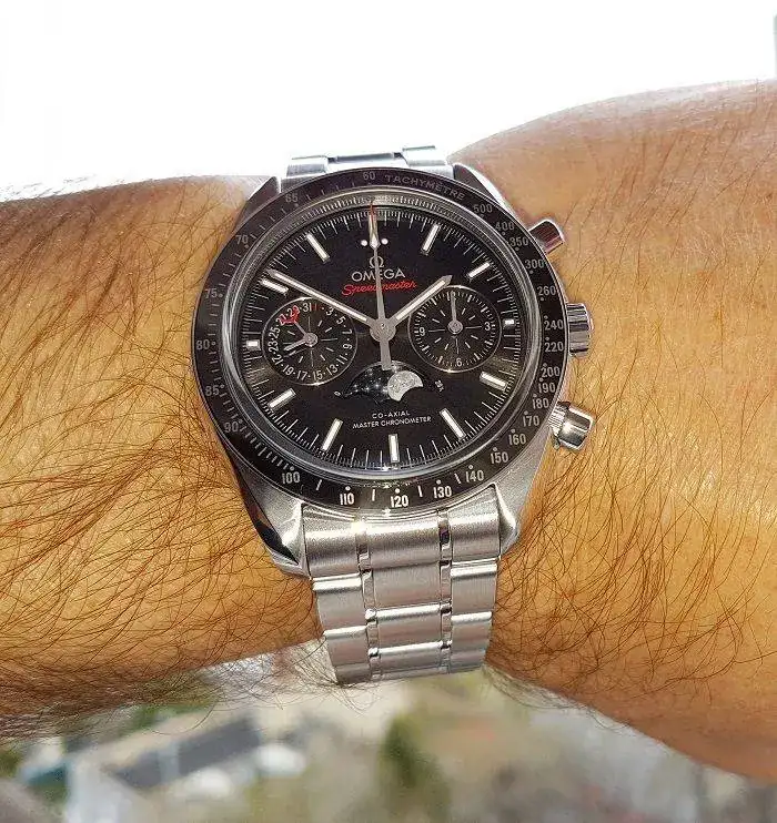 No me gusta nada la luna en general; pero la complicación de fases lunares en los relojes me vuelve loco. Este speedy sí me lo compraría.