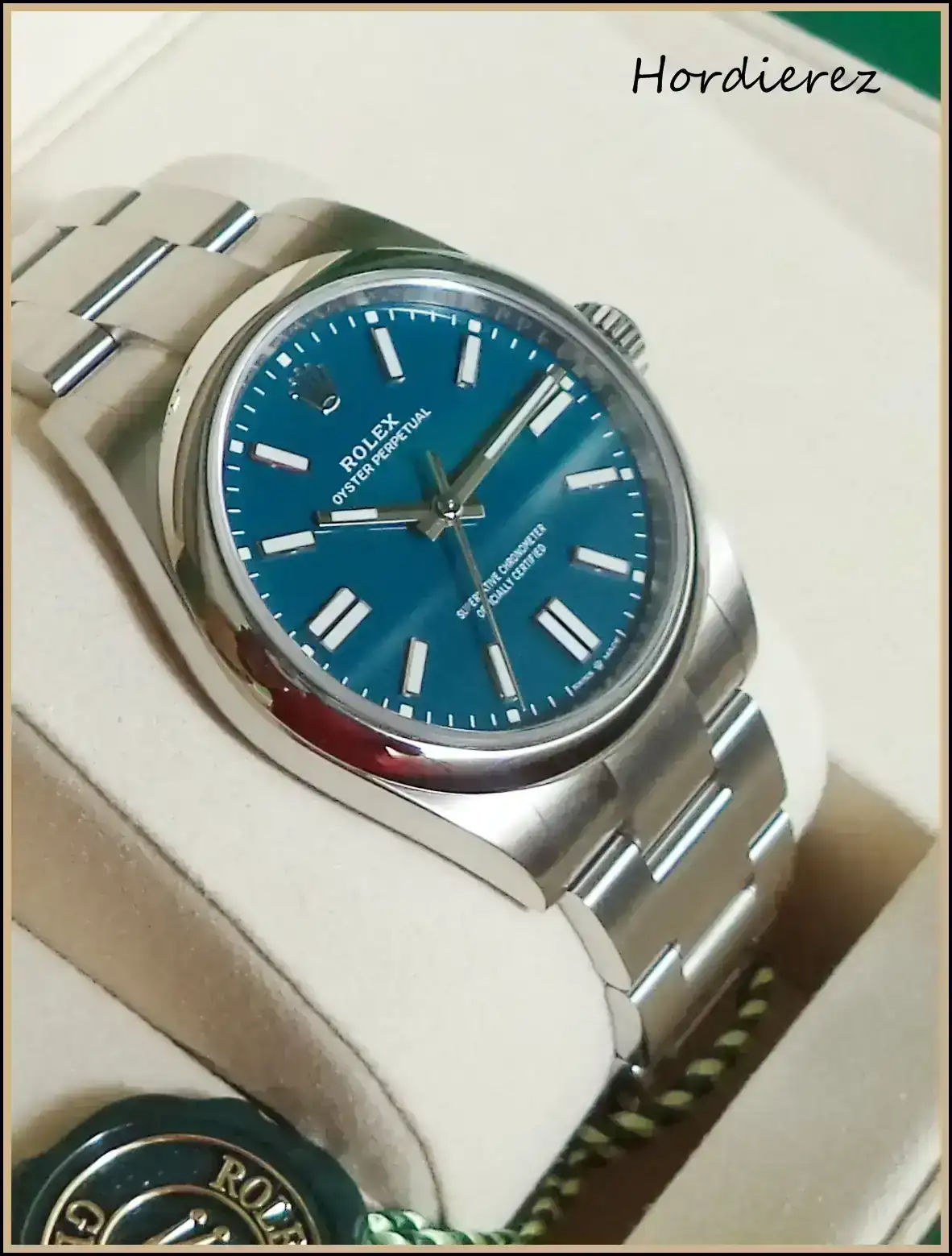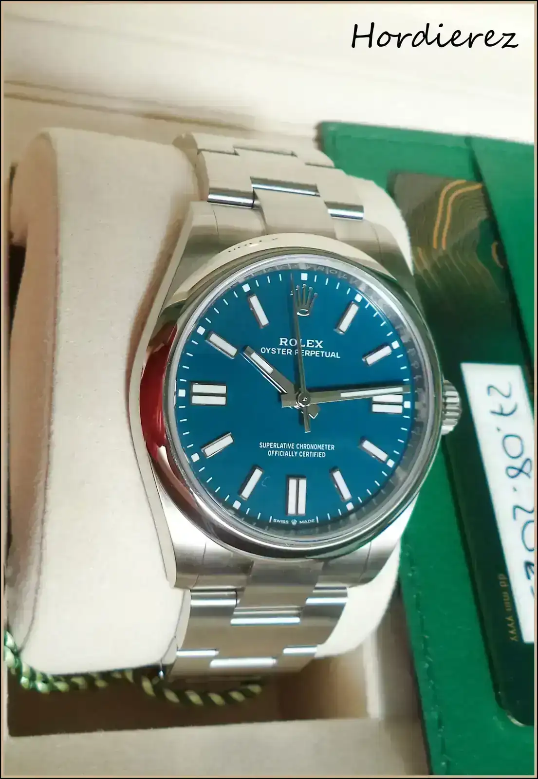 Parece que lo quieran separar del Datejust, pues hay que reconocer que el Oyster Perpetual con esfera Sunburst o Solei es un reloj muy todo terreno. Y con las nuevas esferas mate tira a más informal.
