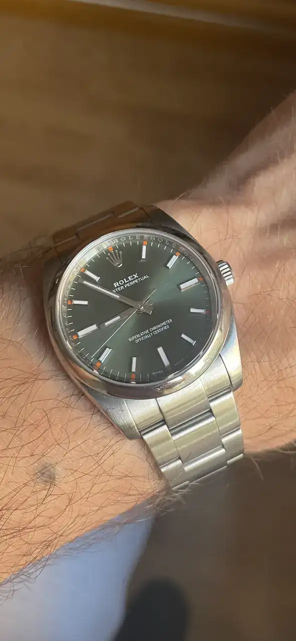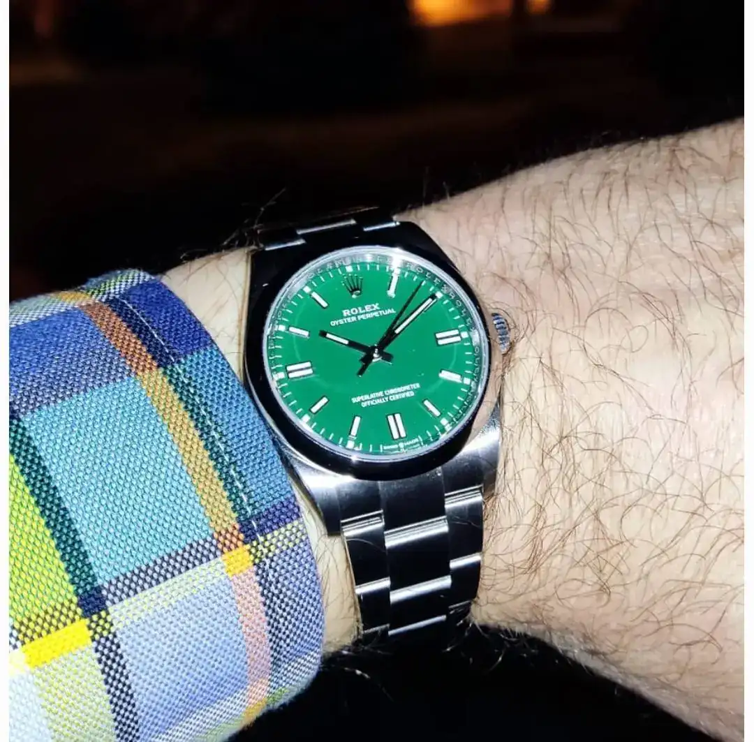 Creo que el mas solicitado y difícil de conseguir es el verde. lo he intentado y ed harto difícil. ese color también me encanta, yo tengo el plata.Mi conocido Rolegg. Yo lo quería en negro pero llegó éste y me cautivó. No se si será cierto, pero me hablaron en el Concesionario de muy poquitas unidades vendidas en España en 41 mm amarillo.