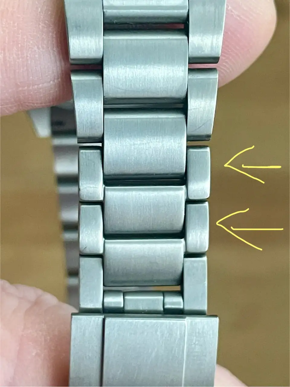 En este caso y después de probar muchas combinaciones encontré ese ajuste 'perfecto' con dos medios eslabones de uncle seiko colocándolos en la parte del armis de las 12. Al principio parecía un poco anti-estético llevar dos medios eslabones juntos pero no se nota en absoluto y con ello tengo el cierre muy centrado en la muñeca y el cierre t-fit en una posición intermedia que me da juego tanto para acortar como alargar en situaciones puntuales donde la temperatura ambiente influye bastante y necesitas o bien darle un par de puntos por arriba o por abajo.