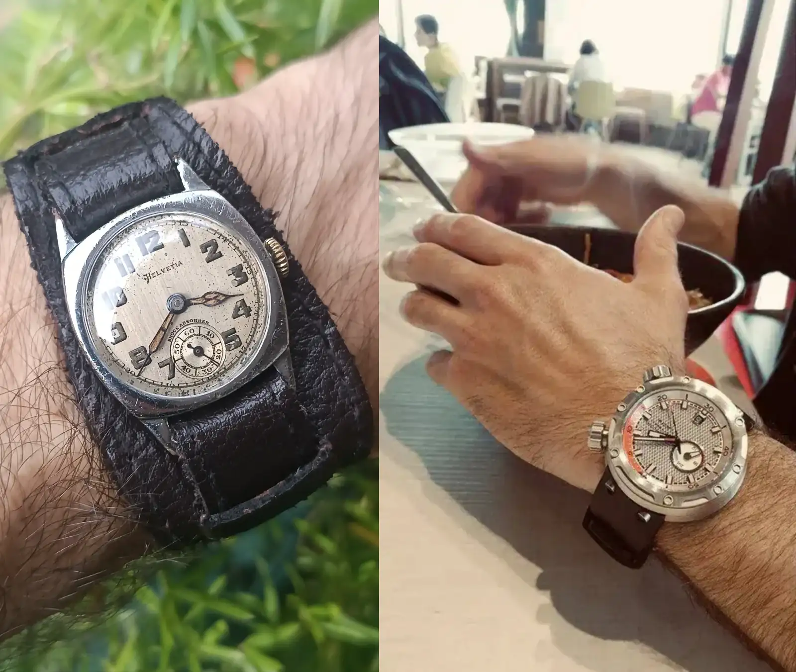 Me había resistido a la instigación del amigo Jordi porque del enunciado del OP se deduce que se refiere a los relojes que usamos normalmente en la muñeca, y con la cantimplora puesta he salido de casa apenas vez y media... Pero como además hoy había un hilo de relojes que se llevan por encima de la ropa, ahí van unas foticos: